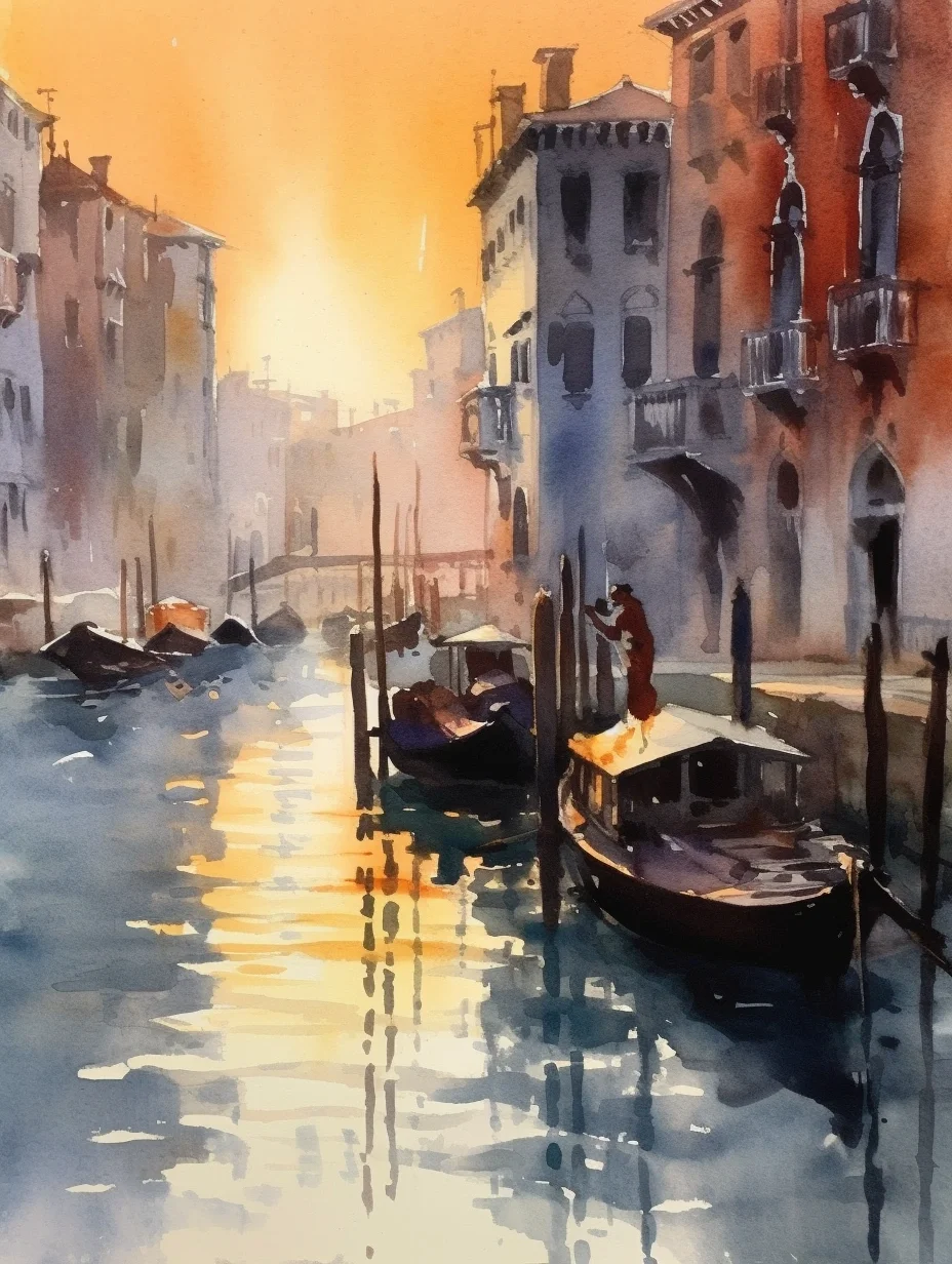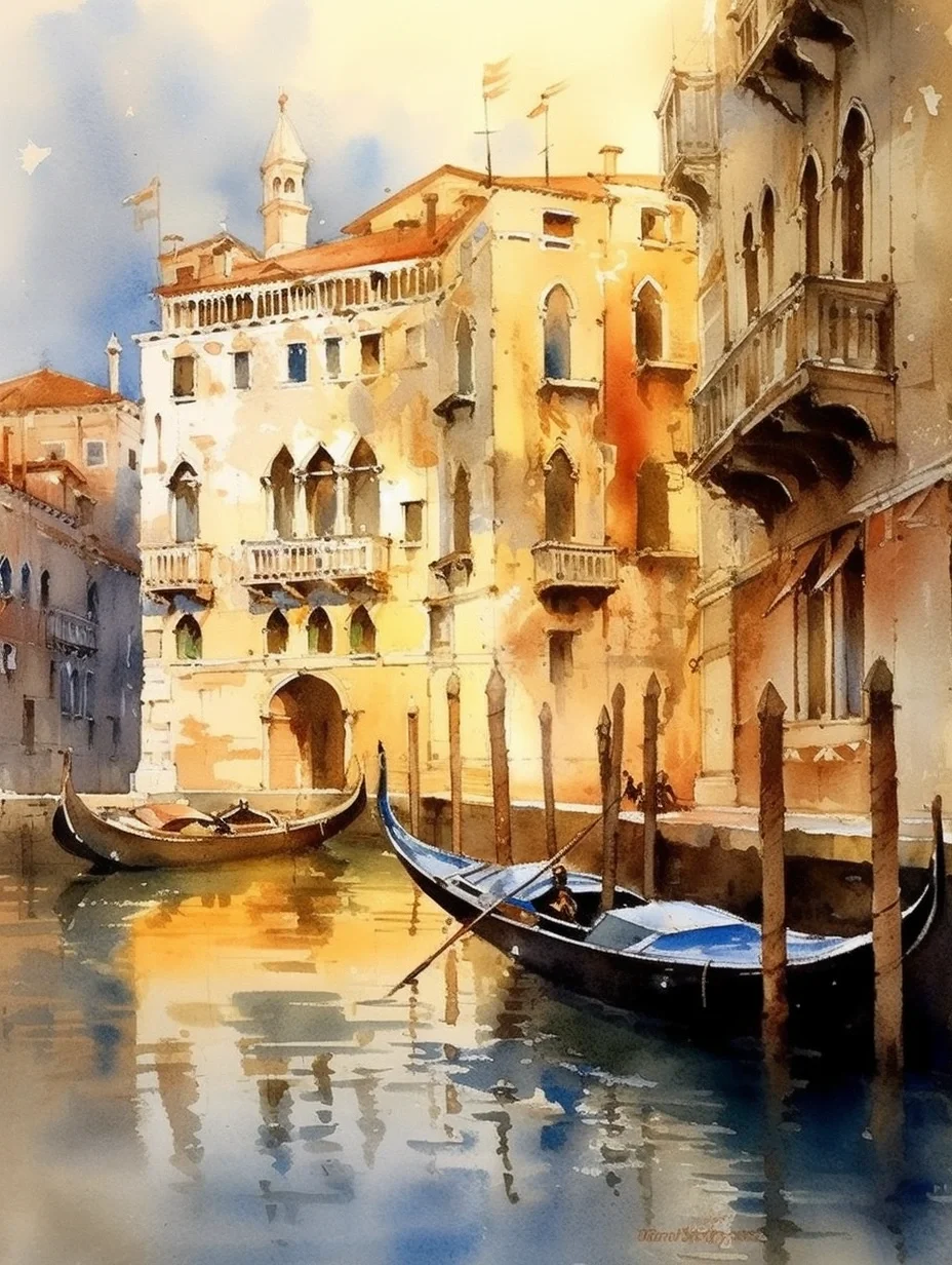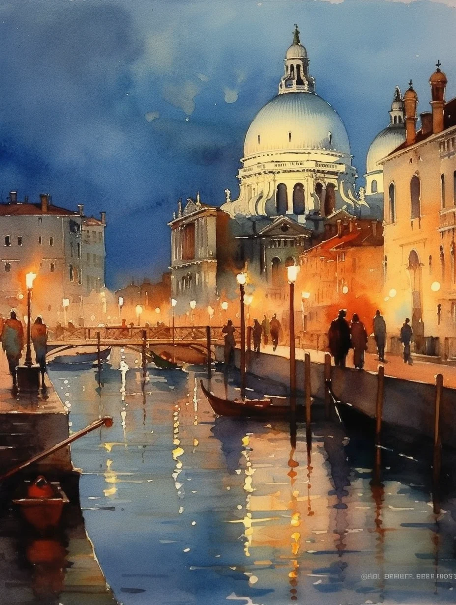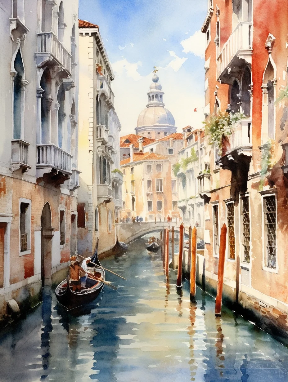 水彩 midjourney AI 水彩风景 威尼斯