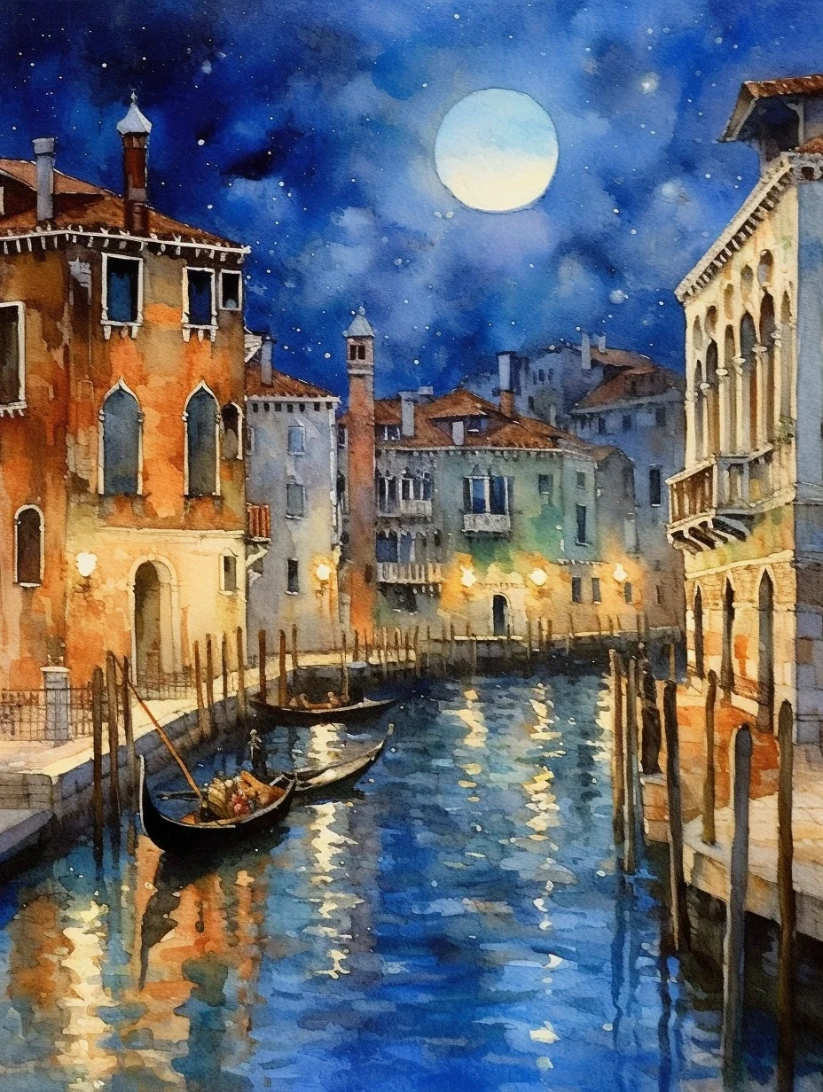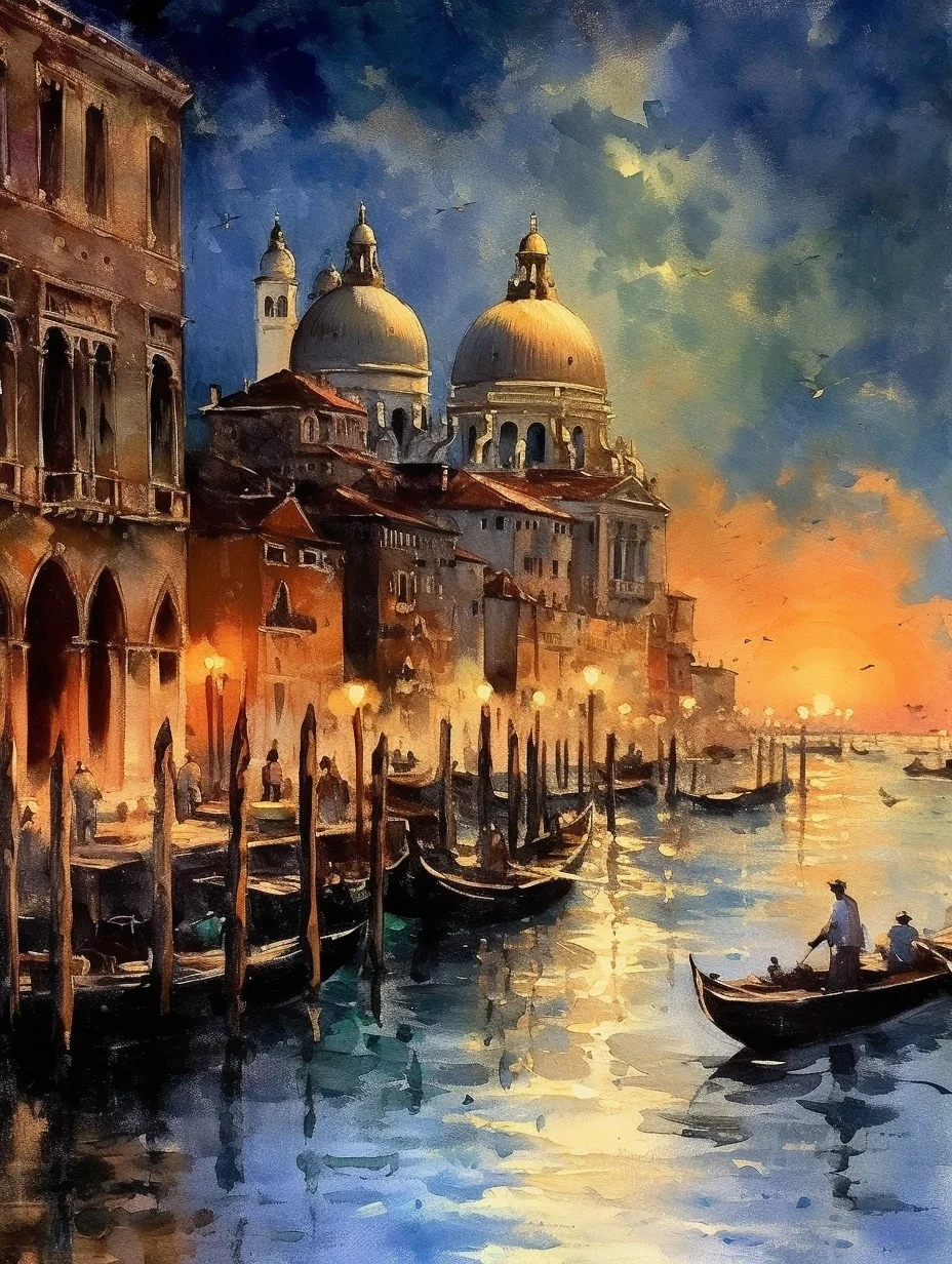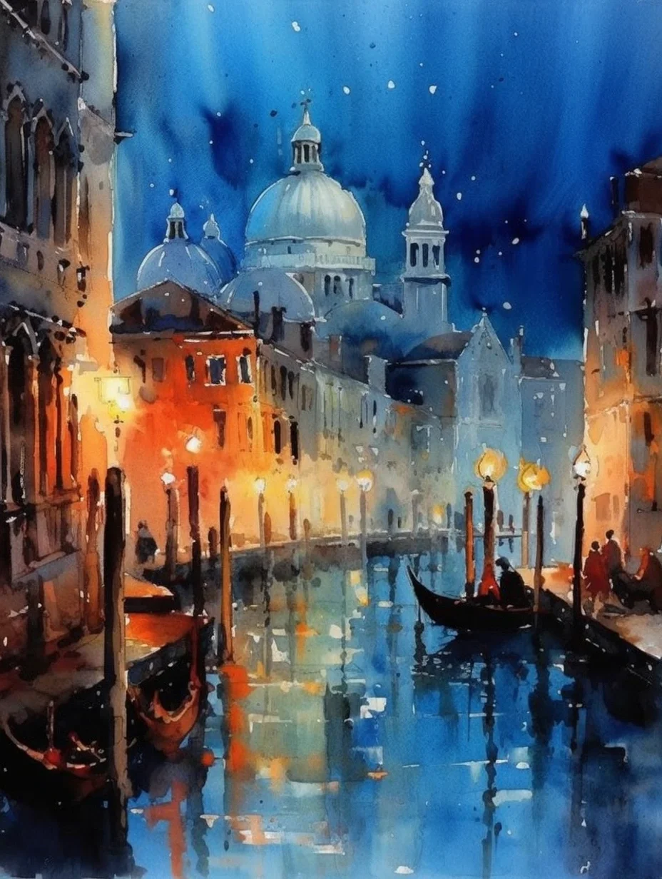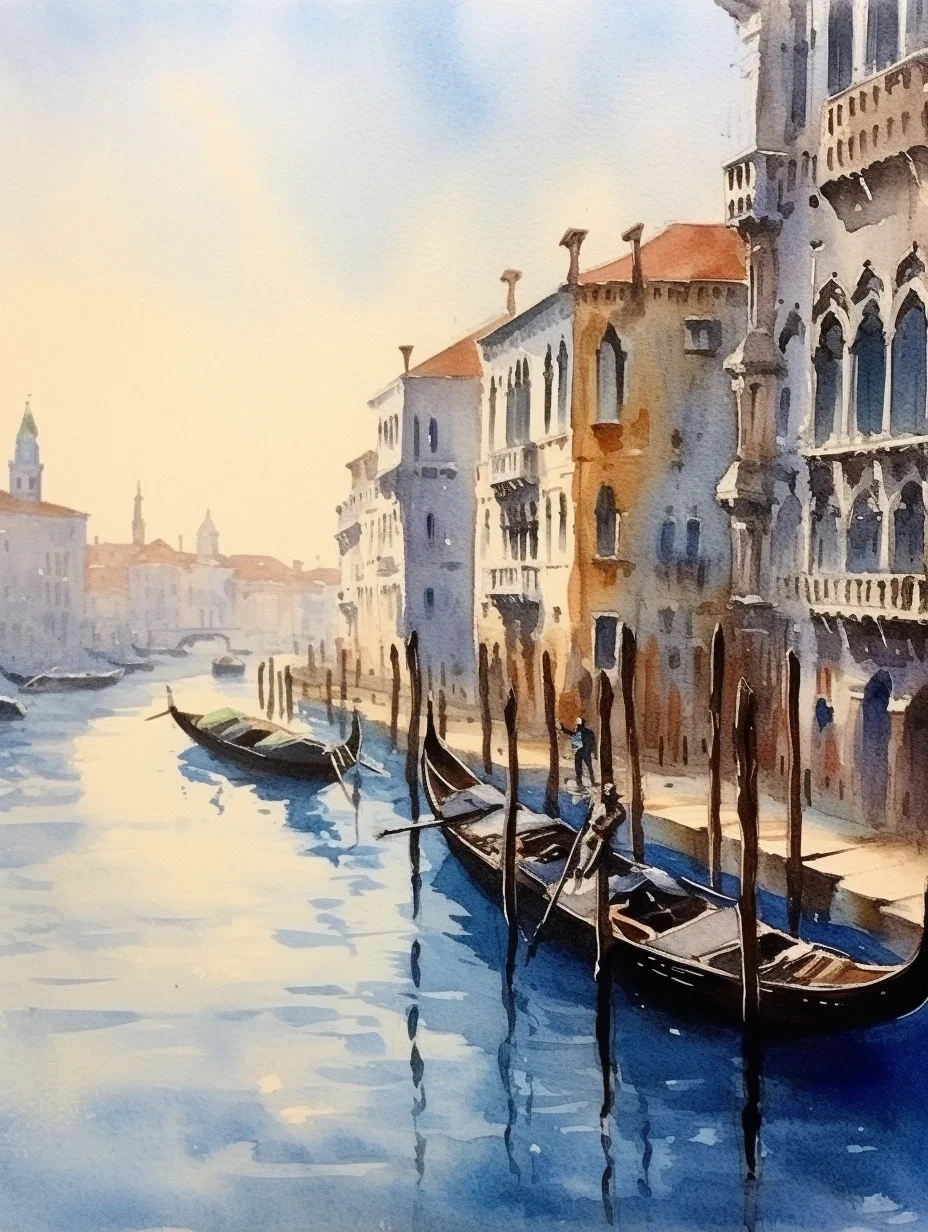 水彩 midjourney AI 水彩风景 威尼斯