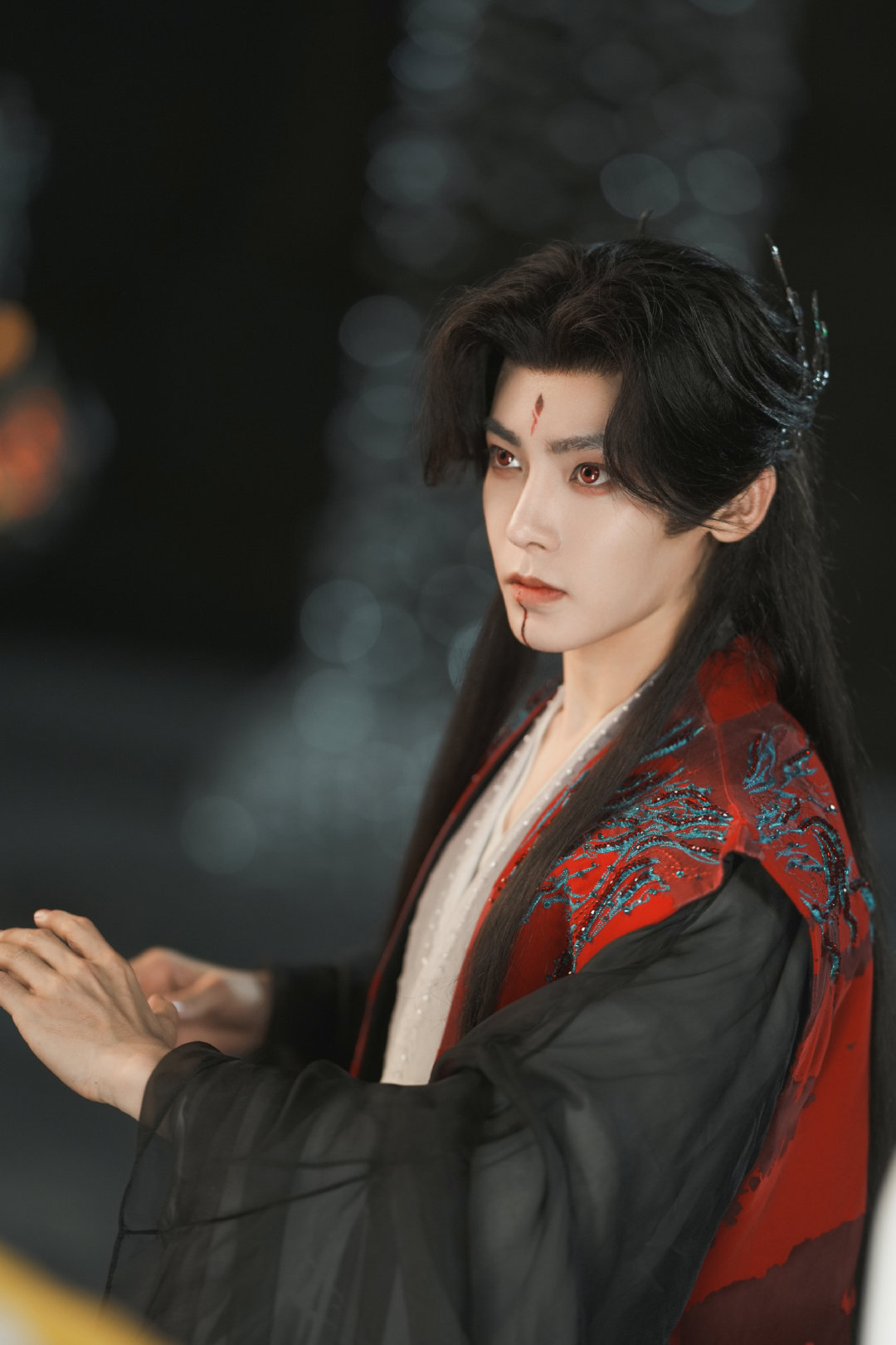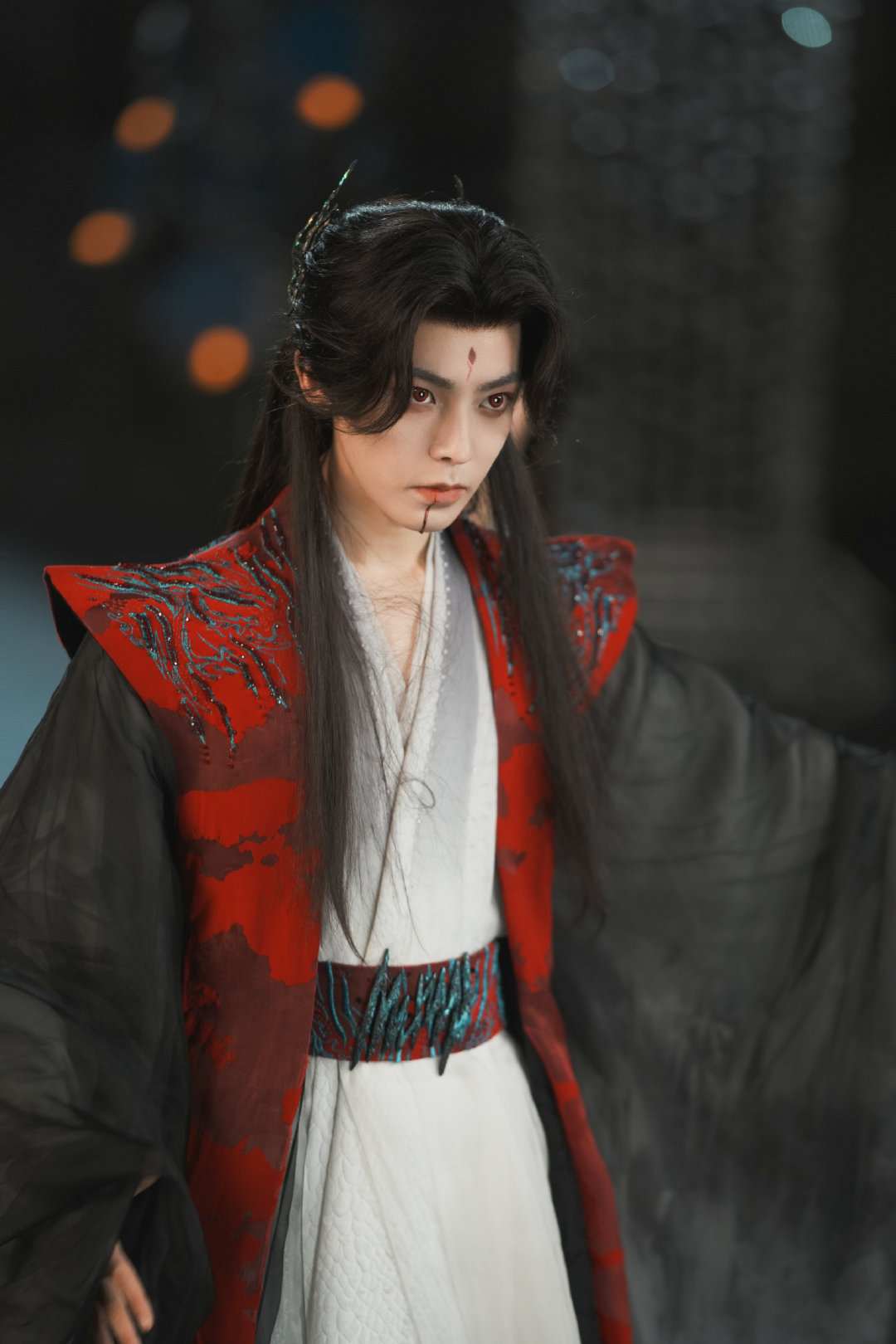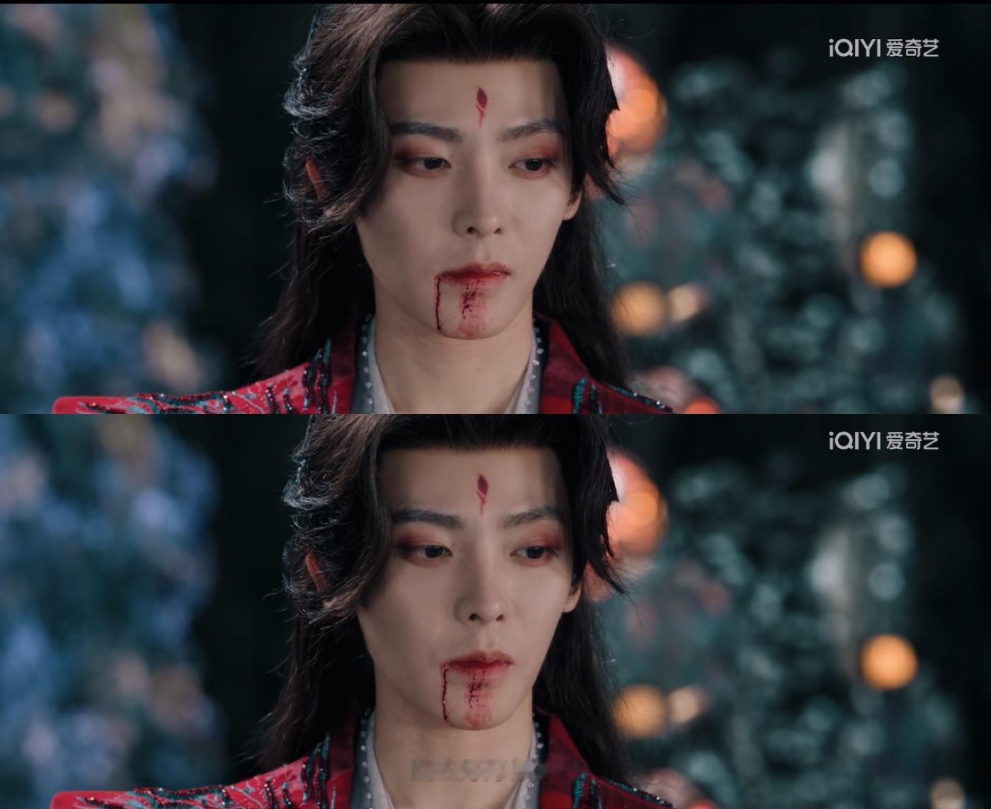 又见侯明昊战损妆 侯明昊战损妆还是太权威了,《逍遥》里红烨受伤,破碎感拉满让人好