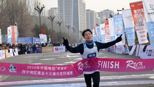 1月1日,2026年中国电信“天翼杯”西宁地区第五十三届元旦环城赛男子10公里个人竞赛组的角逐中,来自兰州的20岁小伙董美军以32分57秒的成绩夺冠。