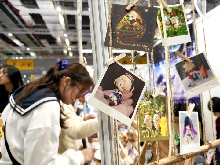 在创作者市集,100多个同人摊位被围得水泄不通。“B6有非常厉害的塔罗牌。”一位排队的玩家告诉新黄河·大鱼财经记者。她提到的“音书斋”挪德卡莱旗舰店,一套塔罗牌售价近百元,队伍要排近半小时。不远处的“非梦非飞”摊位,手工软陶摆件的接单已经排到了两个月后,从苏州赶来的摊主静,直言“东西带少了”。