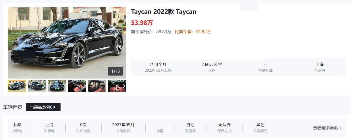 二手保时捷Taycan选车别瞎懵!2022款纯电后驱版不妨多看看,老款入门版纯属给自己找罪受! 买二手Taycan的人,核心就是冲保时捷的品牌调性+纯电超跑的驾驶体验,没人是来买个普通代步车的!2022款,有的车型新车指导价88.8万,二手车现在直接省34.82万,408马力+5.4秒破百,单电机后置后驱布局,城市通勤灵活,高速超车也不费劲,性价比直接拉满。千万别碰2020款早期入门版,当时电池技术没跟上,实际续航和标称差得远,电机小毛病还多,后期维修花的钱能让你肉疼。 年款选择有明确方向:优先锁定2022-2023款,这两年的车电池衰减少,2900mm轴距保证后排空间,4963mm车长搭配1966mm车宽,操控和实用性兼顾得好。2021款可以考虑捡漏,但必须确认有完整4S店保养记录和原厂质保延保,部分批次存在小电瓶亏电问题,没保障的坚决不入手。2020款除非价格低到离谱,且0过户+无任何维修隐患,否则直接pass,早期款2挡自动变速箱的顿挫问题比后期款明显得多。 选款的时候,直接盯紧后驱纯电版,双电机四驱版二手溢价高得没必要,日常开根本用不上满功率,还得多承担养护成本。如果你遇到2022款,原版原漆+0过户+第三方检测合格,这类车源碰到就别犹豫。买二手Taycan不用执着高配置,基础版的核心性能完全够用,选装多的车二手折价更狠。重点核查电池健康度,低于85%直接放弃,还要仔细看维修记录,涉水、重大事故痕迹一点不能有,手续不全的车碰都别碰,选正规车行、支持试驾和任意机构检测的,才是买二手Taycan的稳妥路子!【来自懂车帝车友圈】