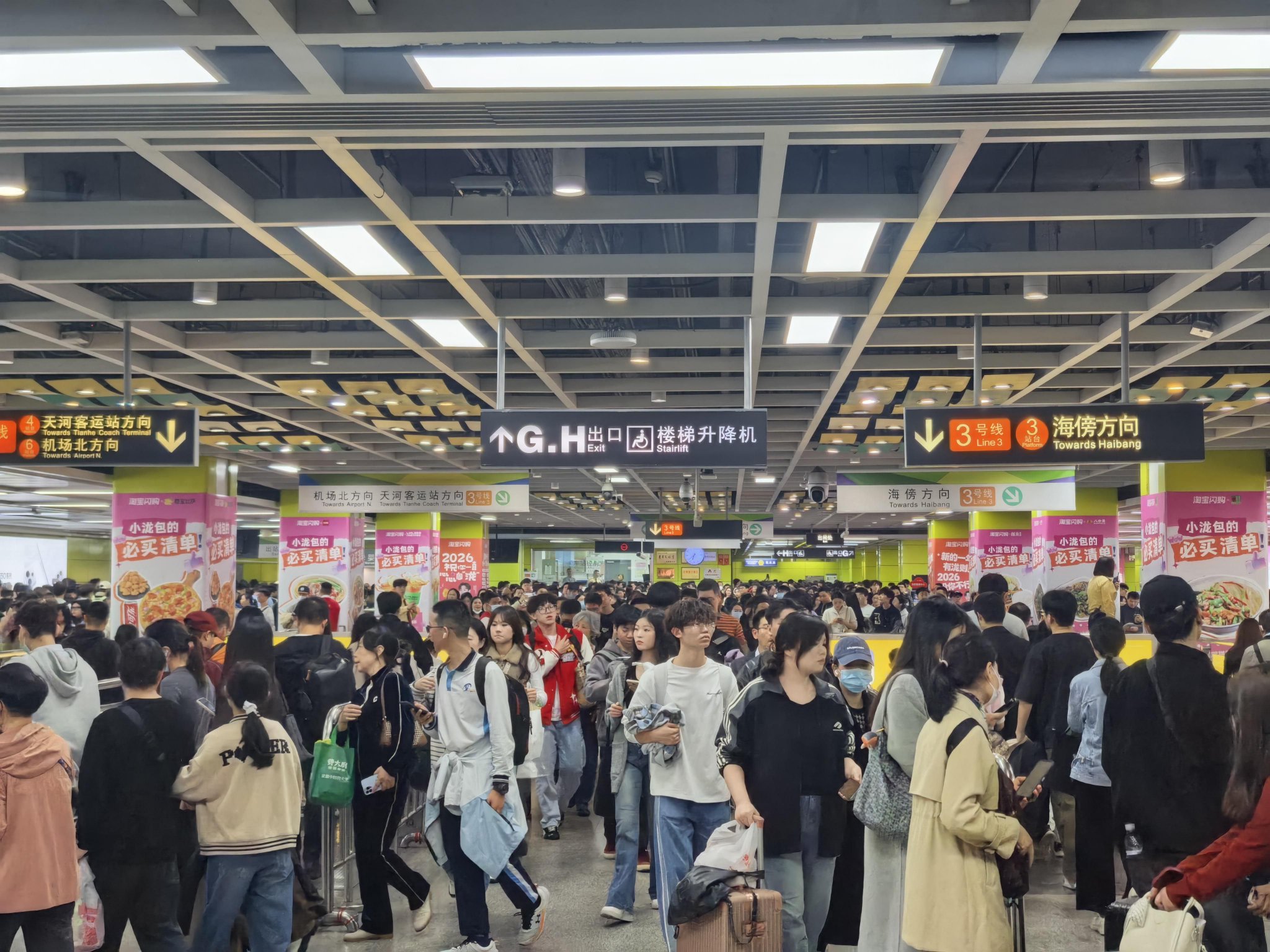 当天线网客流量最大的前三个车站分别为体育西路站55.8万人次、嘉禾望岗站49.8万人次、珠江新城站31.4万人次。