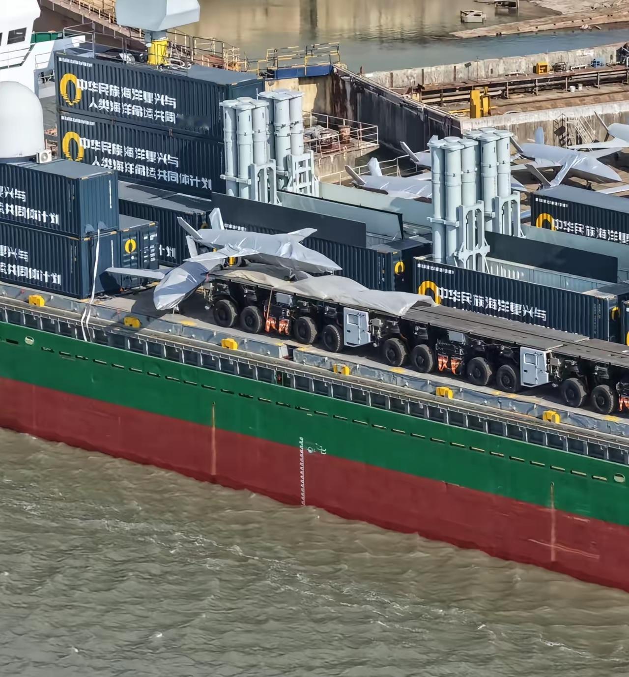 有些突破人类想象力了! 左侧垂直发射!右侧电磁弹射! 而且是模块化弹射装置! 可以根据发射场地长度 和发射飞机大小! 合理组装弹射器长度! 基本实现了电磁弹射的低成本普及! 这让其他国家,几乎都绝望了! 第一,研制电磁弹射有难度! 第二,做出来太贵,无法大量装备! 咱们却可以拿来改装货轮! 其他国家,没法玩了!