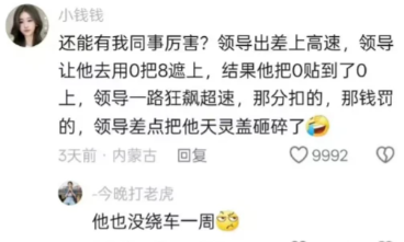 还能有我同事厉害?领导出差上高速,领导让他去用0把8遮上,结果他把O贴到了0上,领导一路狂飙超速,那分扣的,那钱罚的,领导差点把他天灵盖砸碎了