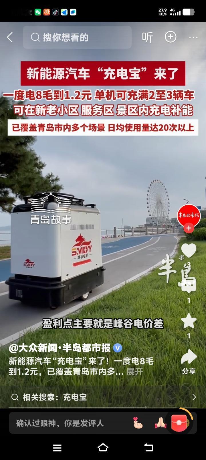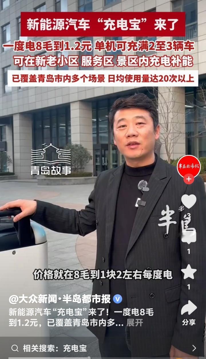 青岛街头惊现“外卖式充电宝”:手机下单,机器人自动跑来找你,一度电最低8毛钱! 想象一下,你的新能源车在青岛的老城区突然“趴窝”,周围找不到一个充电桩。就在你焦虑万分时,手机一点,一个憨态可掬的“小方盒”机器人,闪着指示灯,自己从几百米外“跑”到你车边。这不是科幻电影,这是青岛街头正在发生的真实一幕。新能源汽车的“移动充电宝”,正悄然改变这座海滨城市的出行生态。 这不仅仅是一个充电设备,它更像是一位随叫随到的“能源管家”。无论是栈桥边欣赏海景时电量告急,还是在八大关的老小区里因无固定车位而充电无门,甚至是在跨海大桥的服务区里排队苦等,只需在APP上轻轻一点,它便会规划最优路径,自动驾驶到你面前。充电,变得像点一份外卖一样简单直接。 为什么这项技术能瞬间点燃人们的热情?因为它精准地戳中了百万电车车主最深的痛点——“里程焦虑”与“找桩之苦”。我们买电车是为了省钱、为了环保,但常常被困在“最后一公里”的充电窘境里。青岛的这项创新,正是用移动的灵活性,去填补固定充电网络无法触及的缝隙,本质上是对“人找电”传统模式的一次彻底革命。 看看价格,一度电0.8元到1.2元,与公共快充桩价格持平甚至略低。算一笔账,为一辆电池容量60度的车补能一半,花费不过三十元左右。这不仅仅是经济账,更是“时间自由”和“情绪价值”的赎回。你无需再为寻找充电桩额外耗费半小时,节省下的时间和避免的焦躁,才是它带给用户最宝贵的隐形福利。 更值得称道的是,它展现了一种极具人情味的城市治理智慧。青岛许多老旧小区因电路负荷、车位紧张等问题,难以安装固定充电桩,这让部分居民对新能源汽车望而却步。如今,移动充电机器人以共享经济的模式进入,不占用长期空间,不要求电网大规模改造,巧妙地化解了历史遗留难题,让科技进步的福祉惠及更多普通人。 在高速服务区,它的价值更加凸显。节假日高峰期,充电桩前排起的长龙曾是电车车主的噩梦。现在,多台移动充电车可以像“急救车”一样灵活调度,快速疏散排队车辆,将漫长的等待切割成数个可并行处理的充电进程。这不仅是效率的提升,更是出行体验从“忍耐”到“顺畅”的质变。 当然,任何新生事物都有成长空间。目前,这些机器人尚需在特定场地或辅助下运行,完全自主上路还需法规与技术的进一步突破。也有声音质疑,大规模应用是否会带来新的路面管理问题。但正如汽车取代马车时经历的阵痛,方向对了,剩下的只是时间问题。青岛的尝试,正是迈向未来智慧交通的关键一步。 从更广阔的视角看,青岛孕育的“移动充电”模式,为全国乃至全球的新能源基建提供了“青岛方案”。它用最小的边际成本,实现了充电网络覆盖的最大化。这背后,是本土企业的研发韧性与城市开放包容的创新土壤共同作用的结果。当科技带着温度落地,解决的就不只是充电问题,更是人们对美好、便捷生活的向往。 下一次当你在青岛的街头,看到那个默默行驶、为你爱车输送能量的“小盒子”,或许你会感到一丝暖意。它承载的不仅是电能,更是一座城市向前奔跑时,不忘为每一位同行者点亮前路的贴心与诚意。未来已来,它正从青岛的街角,驶向更广阔的天地。 (来源:综合自半岛都市报、大众新闻客户端及相关企业公开信息) 新能源充电 青岛创新