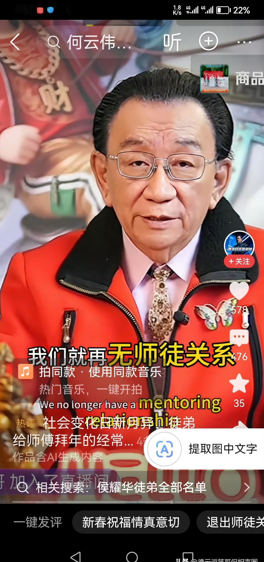 86岁的侯耀华,催徒弟跳槽。 元旦给徒弟拜年,他当众撕掉行规:你们想走,随时发声明离开。 不算跳门,不叫不尊师。 他甚至把话泼出去:“欢迎去找更厉害、更伟大的师父。 ” 这把许多老辈嘴里“师徒如父子,终身不能改”的老理儿,撕开一道口子。 这几年,他反复念叨一句话:徒弟不是师父的私有财产。 他门下二十多个徒弟,包括几个当红的年轻人,他最常说的是“你们去闯,别困在我名头下”。 有人骂他坏了规矩,他却说,规矩困住的是行业活水。 当一个师父不再害怕徒弟离开,徒弟才敢真正长大。 旧时代的师承,是圈住一片池塘。 新时代的传承,是共同汇入江河。 最好的关系,不是驯服,是托举。