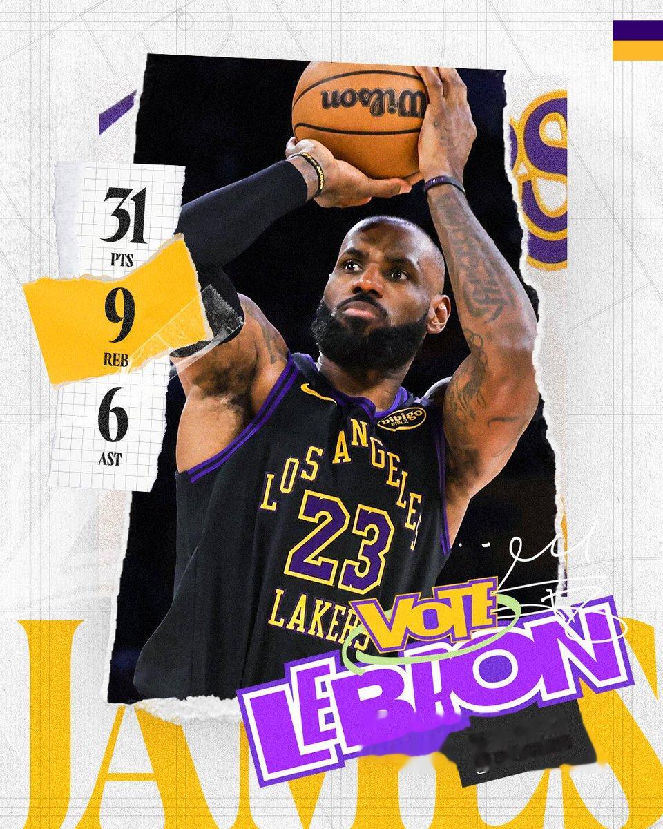 湖人官方账号报道。魔术师约翰逊与勒布朗-詹姆斯。#为湖人投票: