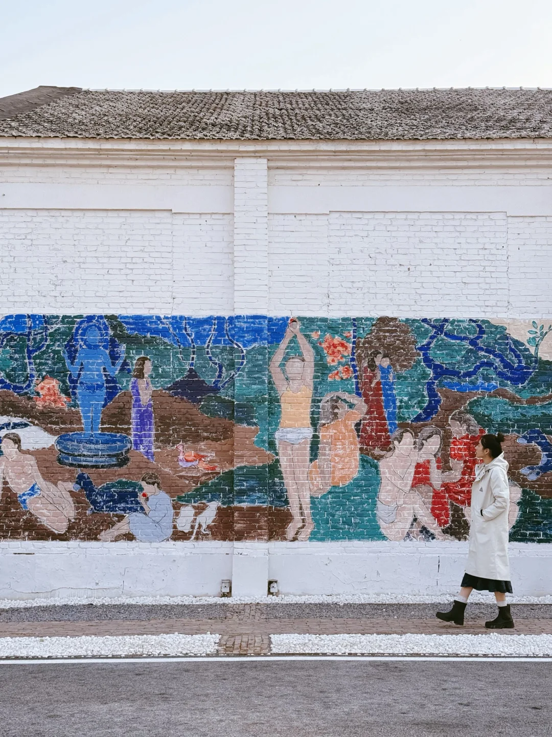从咖啡厅出来直接右拐🤍就能看到这个白色建筑,取白色房子为背景🏠人物在斑马线回眸的画面!