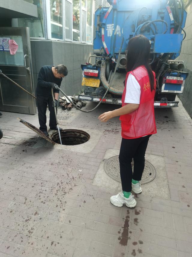 帮建物业为结对的八九宿舍疏通下水。