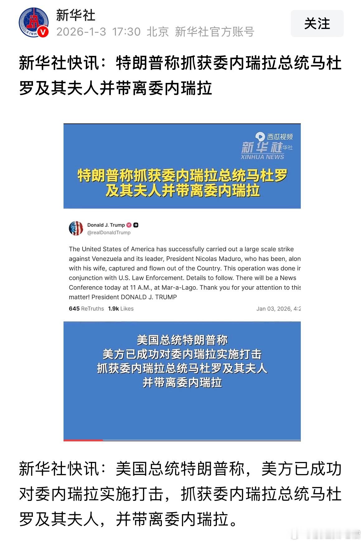 委内瑞拉总统就这样被美军抓获,支持乌克兰的那帮人会支持委内瑞拉吗?欧盟咋不跳出来谴责制裁呢?美军此次行动,跟当年入侵巴拿马抓获巴拿马总统诺列加如出一辙,这就是所谓西方宣传的,主权,人权,民主,自由,最终都是谎言的遮羞布,终究是为掠夺其它国家的资源开始的杀戮,而且毫无廉耻