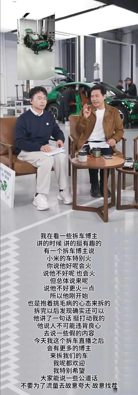 雷军回应为什么要拆车 那必须是主打一个自信!而且这次说的也非常直白,既然要被放在放大镜下审视,那咱不如主动出击,自己拿出显微镜来消除系统性的信任危机。再加上本身小米的造车整体技术和用料都非常优秀,在直接拆给大家看的同时,也给其他同行出了一道“你敢不敢拆”的选择题。所以强烈建议大家都去看看,是一个很不错的能够了解小米汽车的机会,总之真诚永远是必杀技!