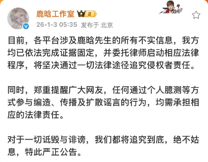 针对博主iamrooise爆料内容,目前鹿晗、檀健次、范丞丞、林更新、黄明昊、王安宇、周奇工作室均已声明⬇️