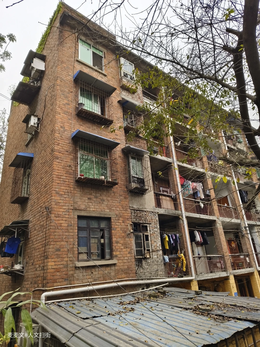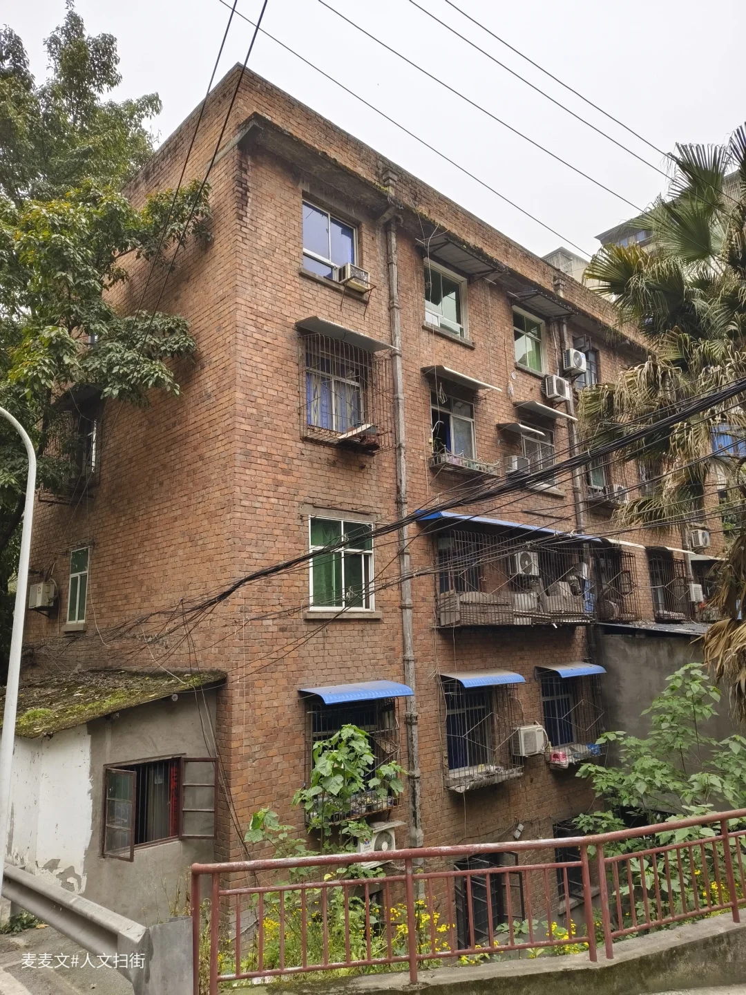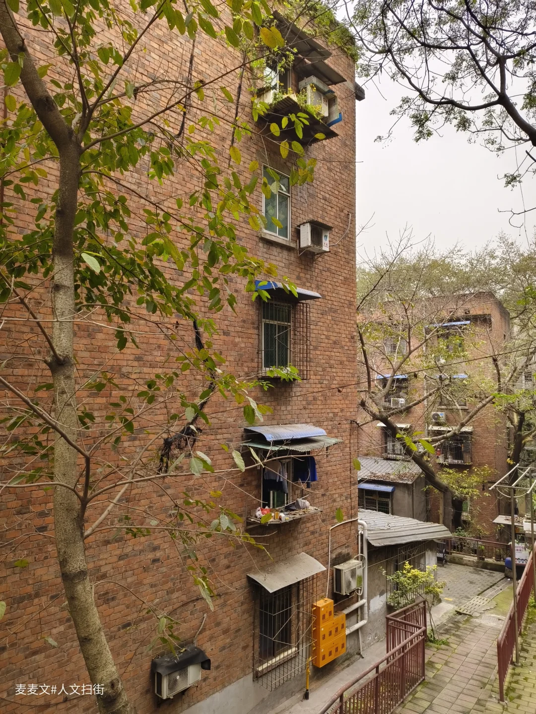 解放湾,位于重庆市沙坪坝区石井坡街道,也是特钢厂的家属区。虽然解放湾的住户不多,但保存着最原汁原味的老家属楼,红砖外墙诉说着六十年代的故事,斑驳的楼道间回荡着半个世纪的脚步声。每一扇老窗都定格着往昔岁月,每一处转角都藏着二钢厂的荣光,时间仿佛停留在那个热火朝天的建设年代。