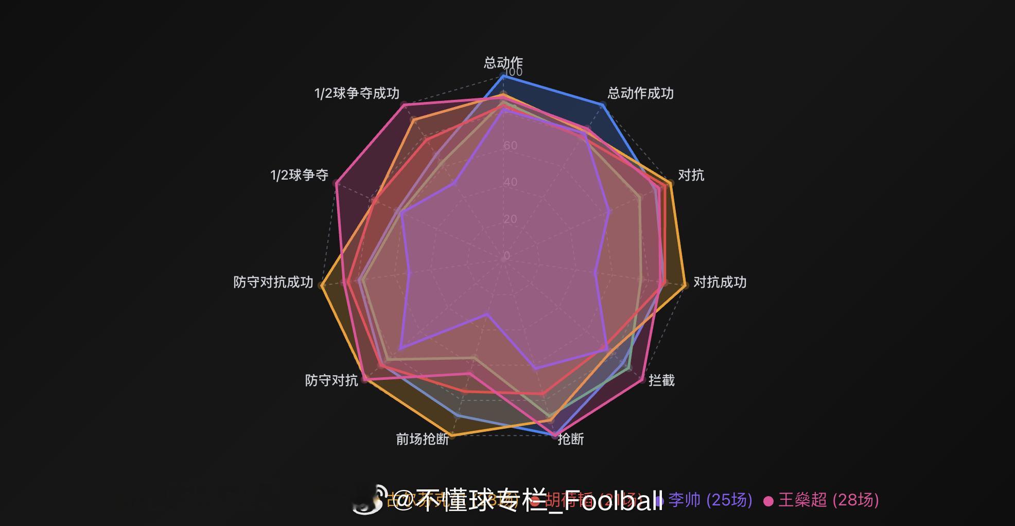 大兵这个数据平台还是蛮直观,那些拿着片面数据想出来骗人的这时候就无处遁形了。比如边后卫,马纳法除了花里胡哨的过人次数领先之外,无论是关键传球、传中还是助攻都落后于大部分争冠队边后卫。进攻上比不过古尔芬克尔不谈,防守上也跟他半斤八两,甚至跟国内边后卫也有来有回。另外再换一个角度来看,马纳法在总的触球动作次数最多的情况下,对抗数据只在中后段…这意味着什么?上海申花中超联赛