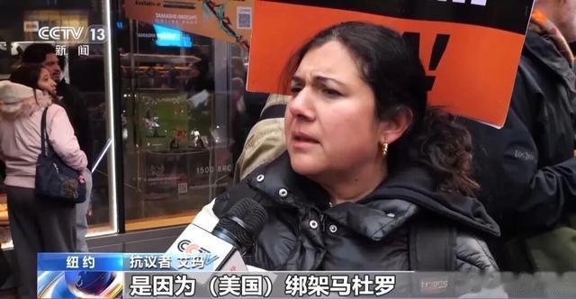 抗议者萨特:我对美国发动政变,违反国际法的行为感到极度震惊,一开始美国轰炸船只,杀害平民,然后直接派去军舰,闯入他国,把一位总统带走,美国没有任何权利这么做。