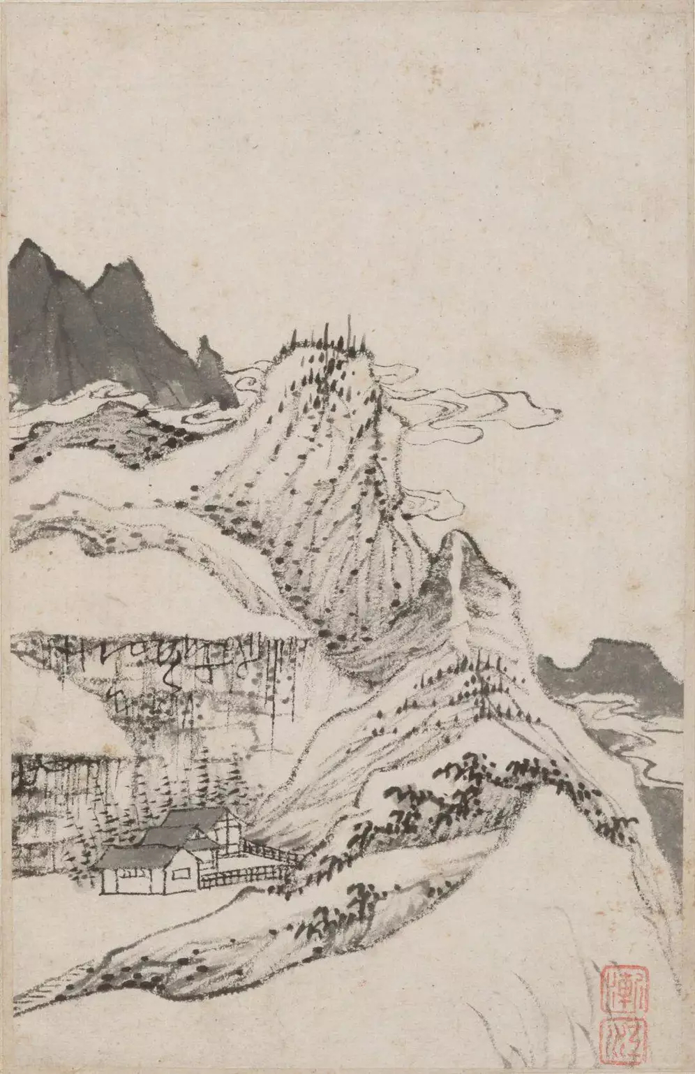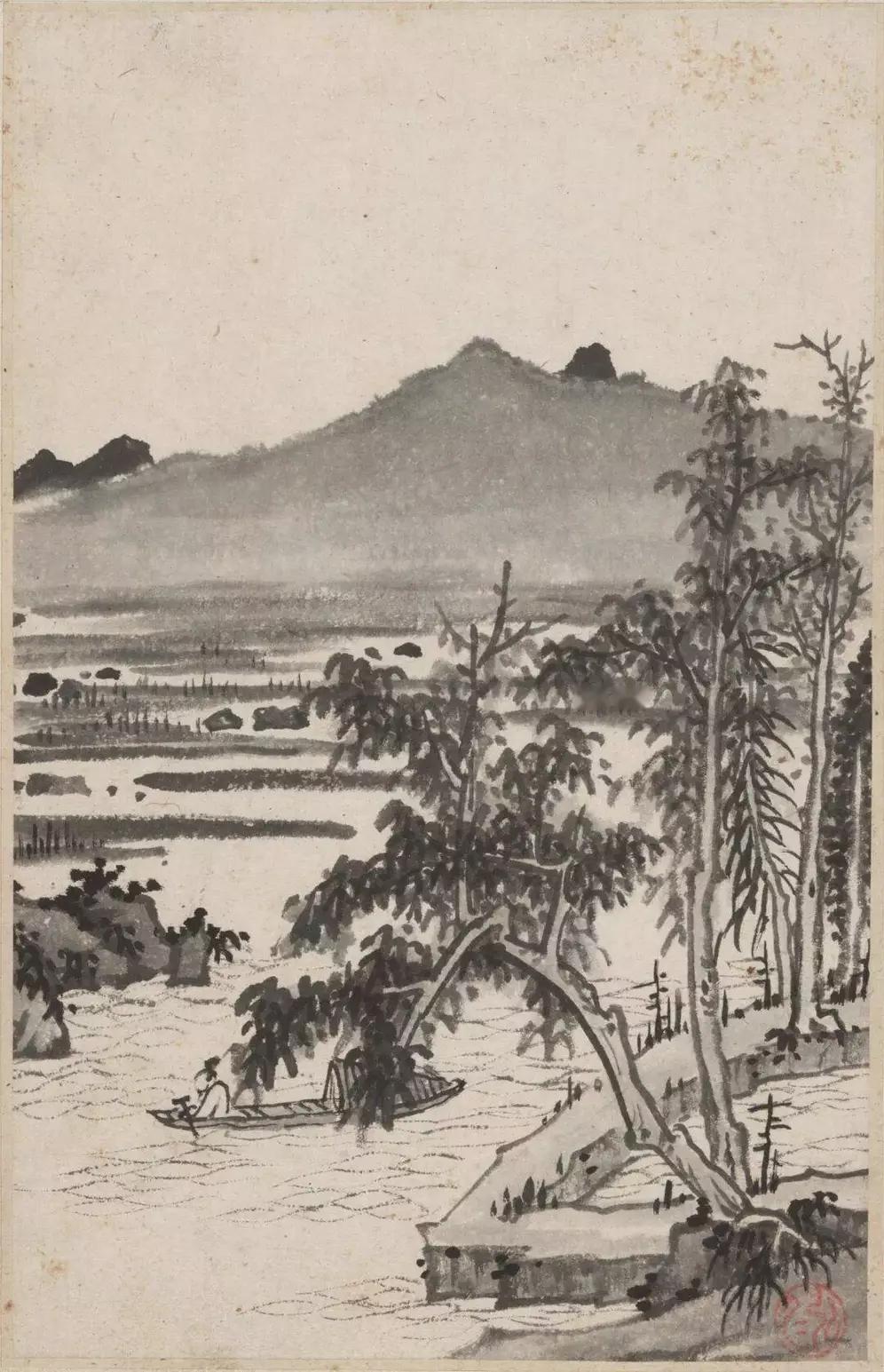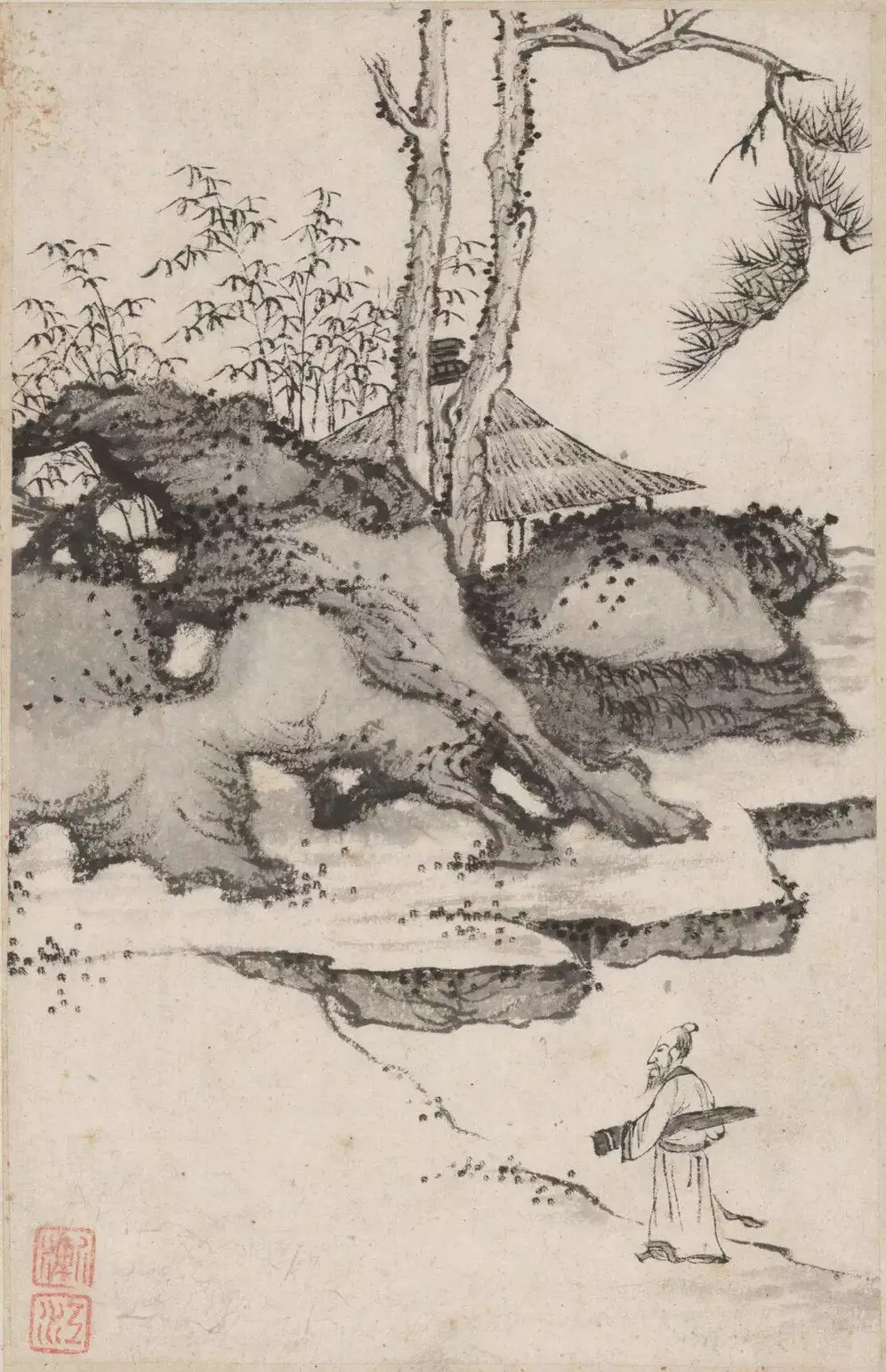 清初四僧 渐江。弘仁(1610-1664)[清]本姓江,名韬,字六奇,又名舫,字鸥盟,安徽歙县人。明亡有志抗清,从古航法师为僧,居建阳报亲庵,法名弘仁,号渐江、渐汇僧、渐江学人,又号无智,人称梅花古衲。精山水,兼工画梅花和双钩竹,亦工诗。曾学画于萧云从,近黄公望,受倪瓒影响最深,为新安派之奠基人。这就是中国风遇见艺术