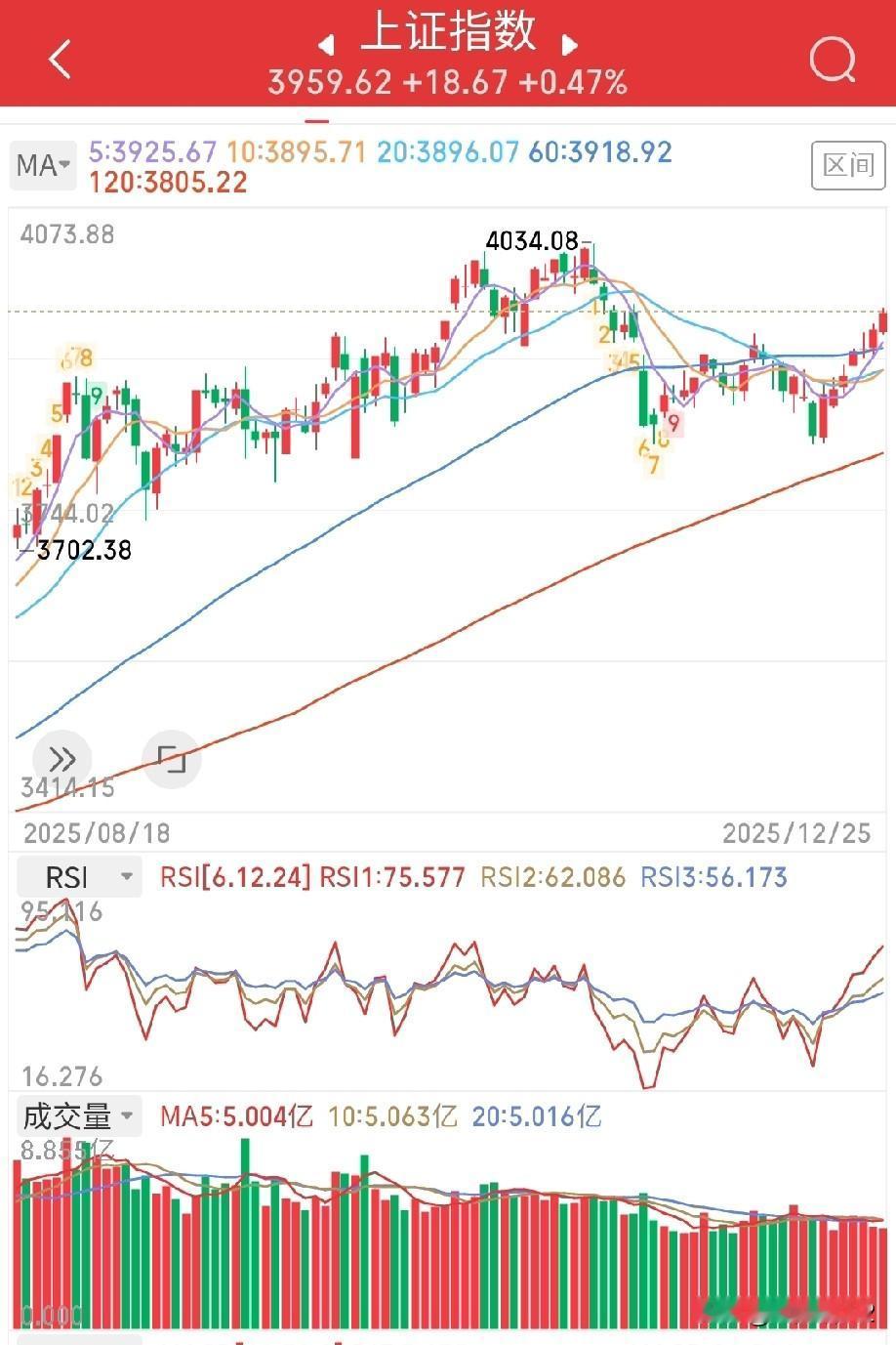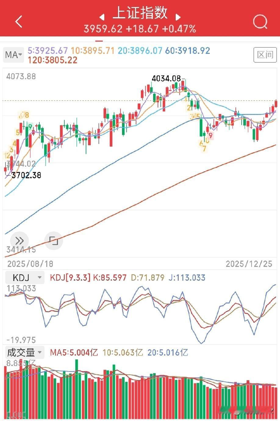 人声鼎沸处,风险暗藏时。大盘七连阳,随时会调整。 沪指昨天突破了30个调整交易日以来的上升颈位线3936点(图1),理论上后势可期。但是我们必须高度重视市场短期之内积累的盈利风险,大看一致看多或看空的时候,有一个叫量什么交易的东西就会来平衡一下市场,这是超级主力机构的一个工具。 大家看一看图2,沪指乖离率已经到达11月份指数问鼎4034点顶部高位时的水平,而且从买卖指标RSI和KDJ看(图3、4),都属于短期超买了。指数短期回调一下更健康,否则即使还能强行上涨,也属强弩之末,市场终究要在近期向下回踩一脚,20天均线的3900点是第一块垫脚石。 毗陵猎人一贯看多市场,但是也一直强调阶段性调整的区间震荡节奏。大盘在这里震荡蓄一下势,可能会更有利于春季行情的发展。而且从量能上分析,近期不温不火地略微增多,至少只能算是主力机构慢慢吸筹的阶段,绝对没有到拉升的时候,过程还会有反复。 个人观点,不构成投资依据。不喜勿喷。祝大家今日好运。
