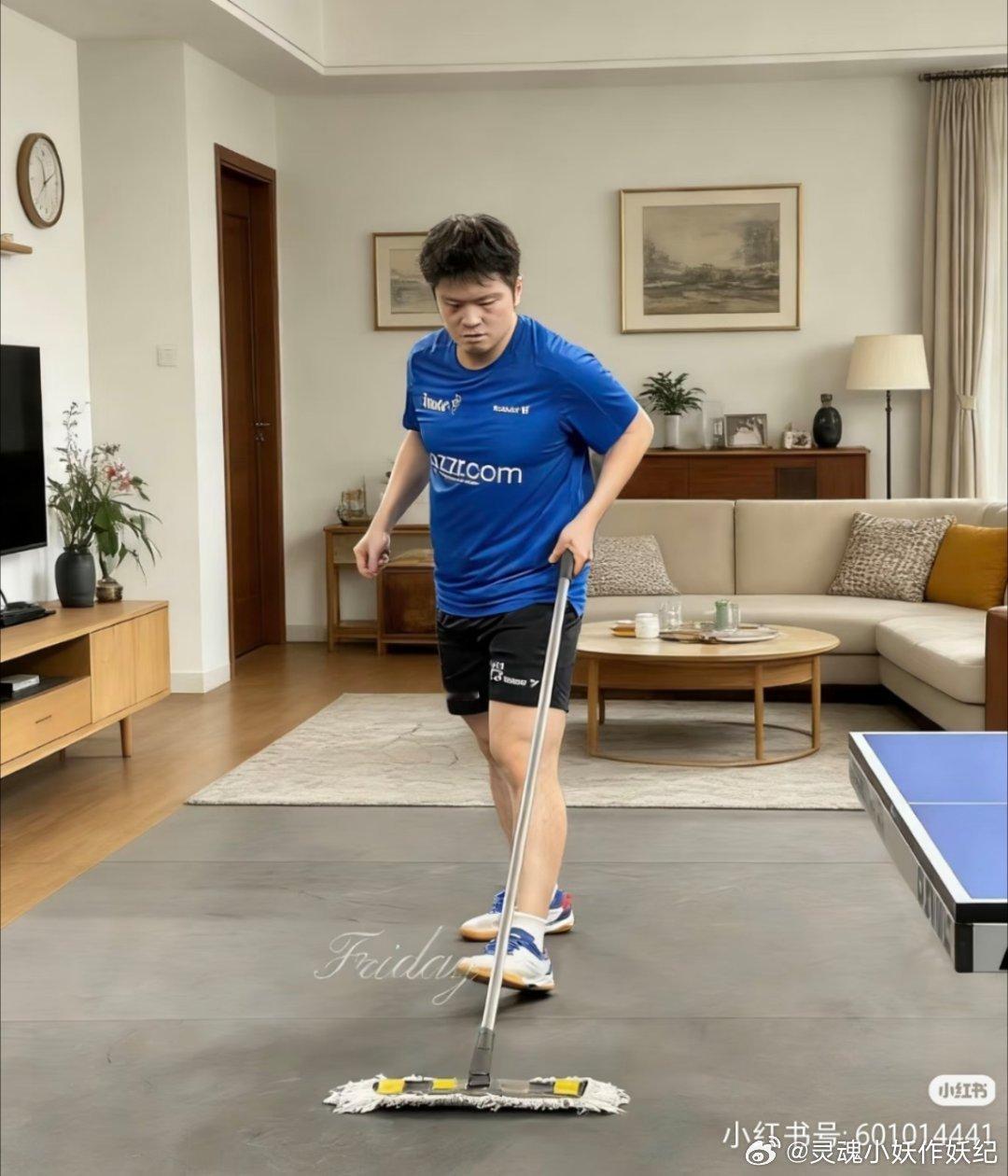 认真做家务的樊振东cr:friday