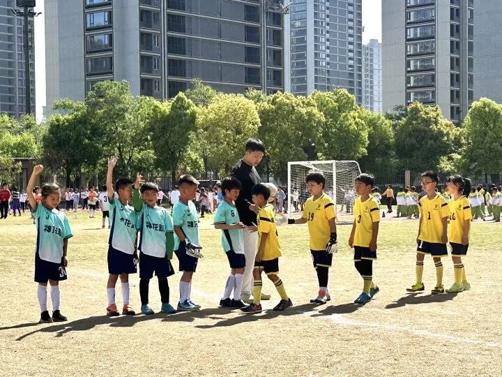 经过一次次激战,我们的足球队终于成功杀入了决赛。决赛的对手是实力强劲的一班,这倒是给孩子们带来了一些压力。比赛前,我和孩子们沟通了比赛的心态。进入决赛已是意外的结果,至于最终的名次,我们要放平心态看待。这样聊了一番,孩子们变得更加洒脱和大胆了,脸上的表情也放松多了。“哔——”哨声响起,照例是对手问好的环节。队员们带着满满的信心和坦然的心态,伸出双手迎接了对手,也向我们的啦啦队展开了大大的笑容。阳光正好,比赛开始了......