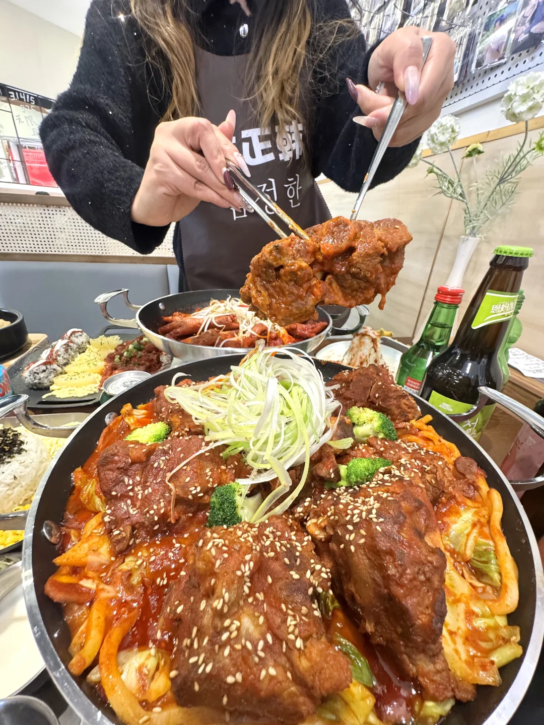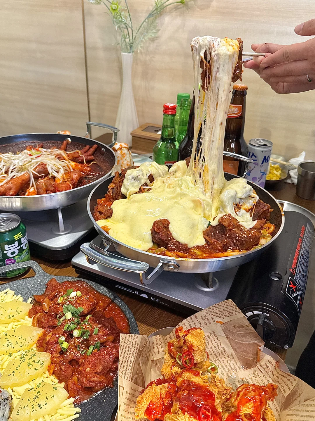 一秒到小韩的漂亮饭🌟 整面爱豆墙 打卡拍照敲好看 韩风满满🇰🇷 敲有氛围~ 🫕点了好吃的脊骨锅 和在韩国吃到的一样! 里面还有鱼饼🍥年糕、头菜🥬、地瓜杏鲍菇等 还单加了芝士🧀海量瀑布芝士 裹上脊骨奶香浓郁!
