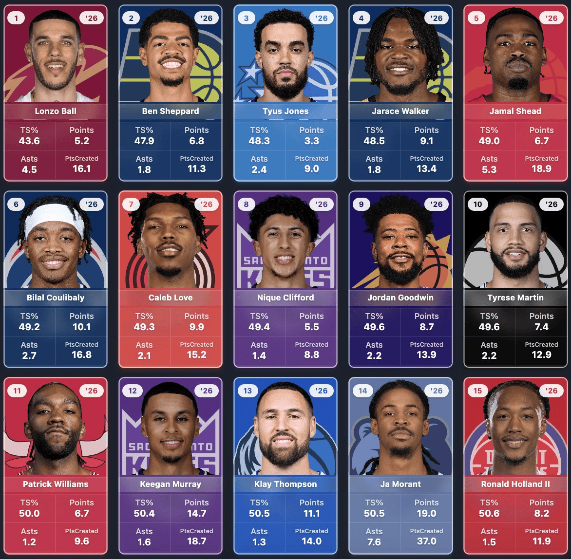 1.朗佐-鲍尔—真实命中率43.6%—5.2分