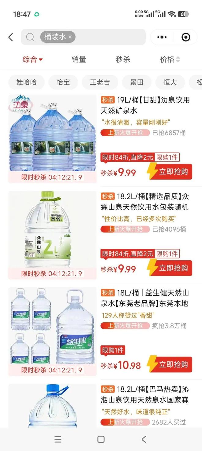 自己常买的桶装水,从以前的7.69、7.99元涨到了现在的9.99元。