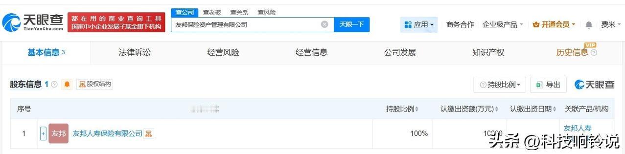 【友邦人寿成立资产管理公司 注册资本1亿】 天眼查工商信息显示,1月4日,友邦保险资产管理有限公司成立,法定代表人为欧阳理良,注册资本1亿人民币,经营范围为保险资产管理。股东信息显示,该公司由友邦人寿保险有限公司全资持股。 天眼查信息:
