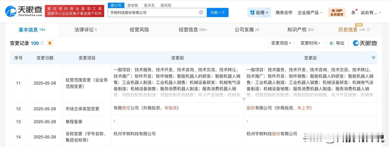 【盘点宇树科技投资版图 宇树科技一年内成立多家新公司 宇树科技关联公司已多次增资 宇树科技关联公司已多次更名】宇树科技上市绿色通道被叫停 据媒体报道,宇树科技A股上市的绿色通道被叫停,但上市并未叫停。所谓上市“绿色通道”是一种旨在优化审核流程、缩短上市时间的机制,通过优先处理、简化程序等方式提升效率。根据中国证监会官网显示,宇树科技11月份已经完成了IPO上市辅导工作。公告显示,宇树科技拟申请在境内IPO,中信证券为辅导机构。 天眼查工商信息显示,宇树科技关联公司宇树科技股份有限公司成立于2016年8月,法定代表人为王兴兴,注册资本约3.64亿人民币,经营范围含软件销售、智能机器人的研发、智能机器人销售、工业机器人制造、工业机器人销售、机械设备研发等。股东信息显示,该公司由王兴兴、汉海信息技术(上海)有限公司、宁波红杉科盛股权投资合伙企业(有限合伙)、上海宇翼企业管理咨询合伙企业(有限合伙)等共同持股。对外投资信息显示,该公司在内地直接持股6家企业,均为存续状态。值得一提的是,2025年以来,宇树科技已成立多家新公司,包括重庆宇羿科技有限公司、宇树科技(宁波)有限责任公司、深圳天羿科技有限公司。此外,该公司已多次增资并多次更名。 天眼查信息: