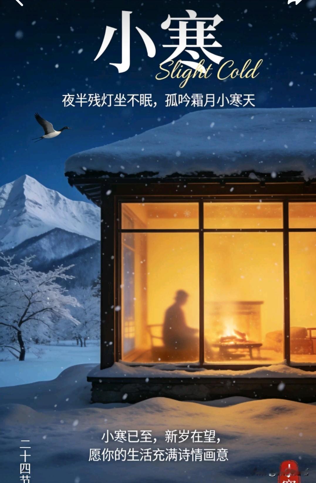 夜半残灯坐不眠,孤灯霜月小寒天。今日小寒! 灯花瘦成故人影,霜月沁透旧窗纱。更漏沉时寒凝指,坐久浑忘身是客,寂静成画。 问寒夜:能赊三分暖?夜不语,只将星子熬成冰屑,撒向无涯。问孤灯:可映当年颜?焰微颤,忽忆母亲补衣影,针脚细如初雪痕,转身回眸,不赏泪如雨下。 霜色爬上宣纸,洇开戊寅年冬。父亲呵冻研墨,写“人间有味”;小妹偷藏笔头,画灶猫戏雪。墨香混着粥沸的咕嘟,熏暖了整个童年,如今犹传佳话。 忽有笛声裂冻云,是邻家《梅花三弄》?不,是青春那头,你折竹为笛,吹破雪夜的莽撞。笛孔漏出的月光,至今还在骨髓里,作响沙沙。 最寒处,生暖意:譬如灶膛余烬暗红,譬如别时你塞来的,尚带体温的馍,譬如此刻,霜月正为万千离人,缝制思乡的锦袍,庇护千户万家。 檐角冰锥忽断,叮——敲响子时禅。恍见祖母推门入,发沾雪,怀揣新烤的薯:“寒极则春生呀…”话音落,满室漾开槐花汛,草发新芽。 起身拨灯芯,爆出两朵并蒂花,原是早年埋下的相思籽经廿载霜雪,终在寒极之夜,绽开无声,思念到天涯。 推窗见:十万琼枝皆低眉,三千屋瓦俱素心。天地正在完成一场,最庄严的收鞘——收刀入鞘时,万物温柔,貌美如花。 远村鸡鸣啄冻云,晨光始分娩。雪地脚印一行,歪斜如童蒙字迹,写着亘古诗篇:今日小寒,宜怀旧,宜念远。宜将未尽长夜,煨作明朝,檐下第一滴,报春的钟乳石。 (图片AI制作来自网络) 小寒 分享今日的感悟 分享每天的感悟