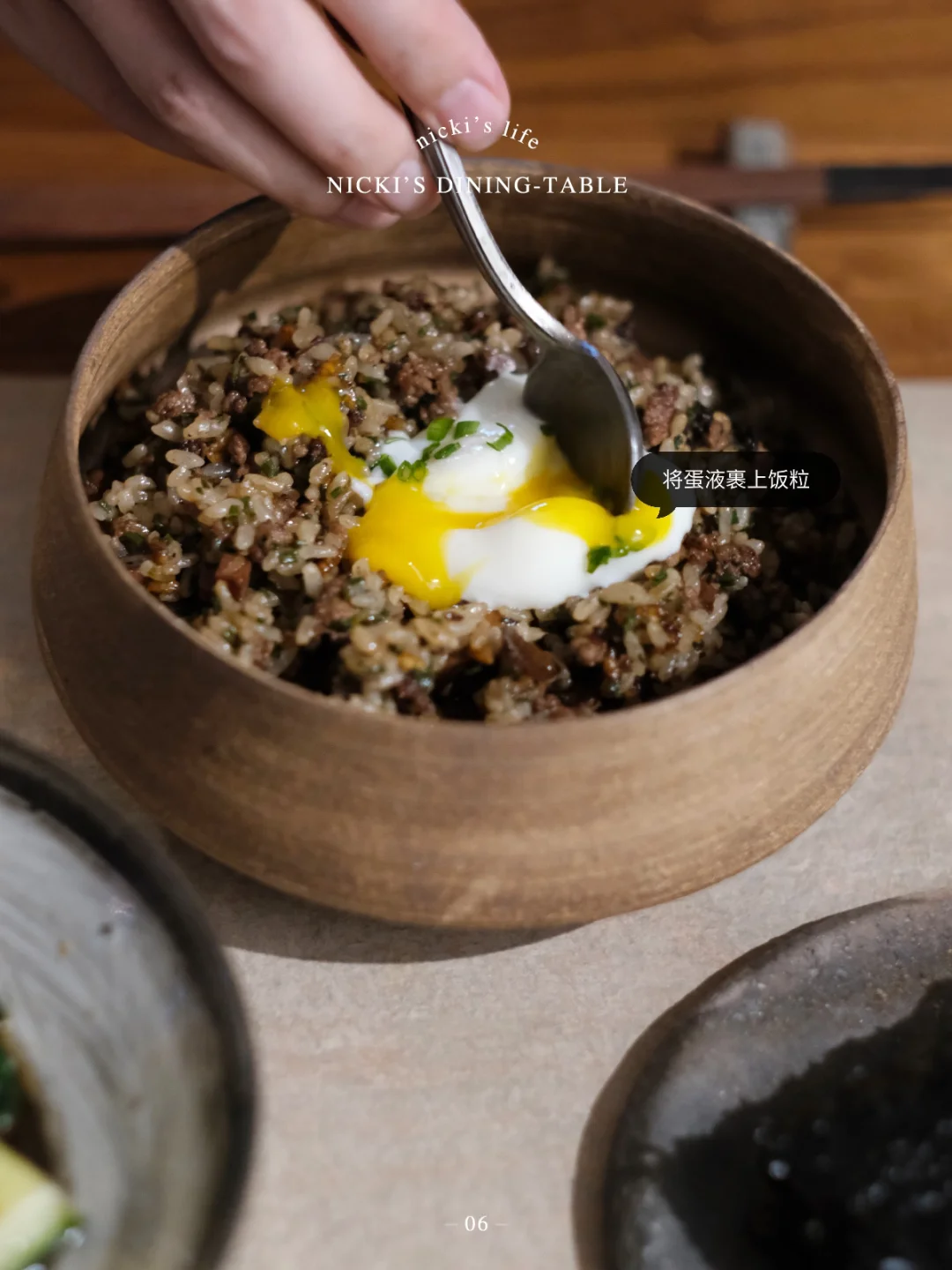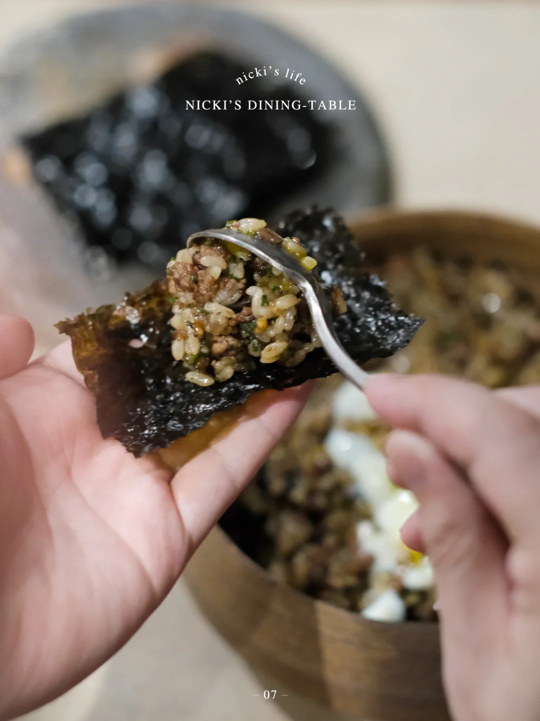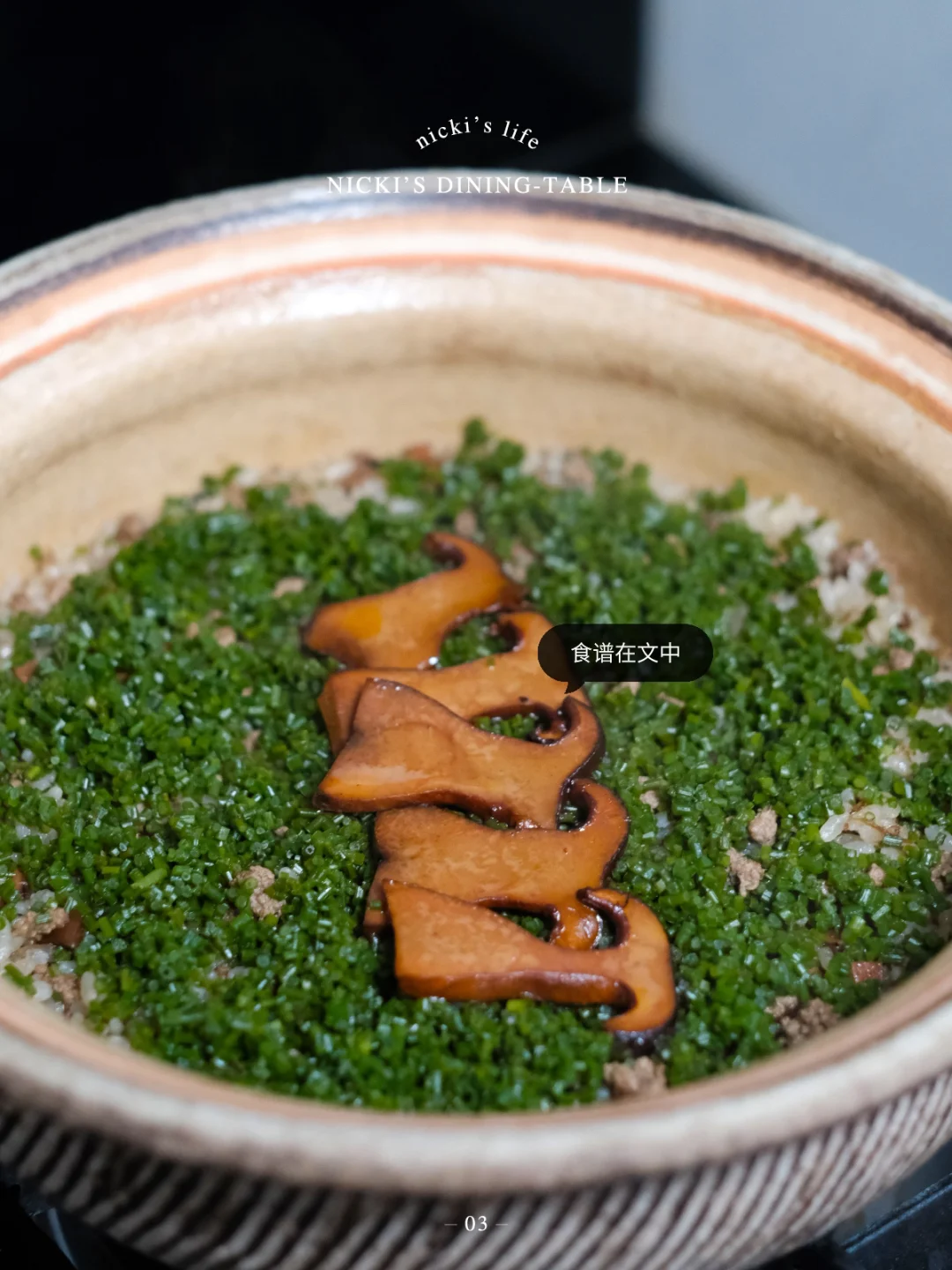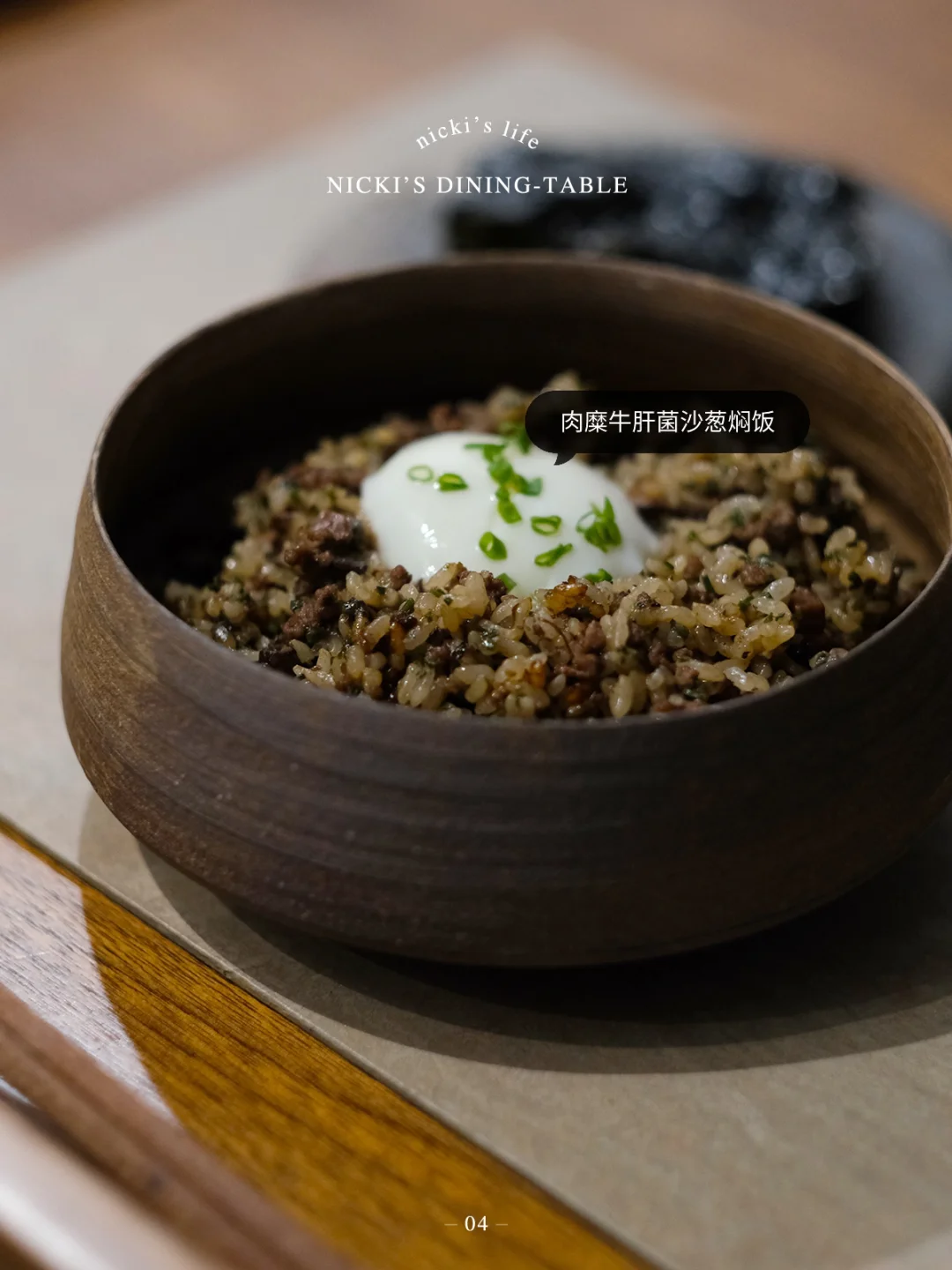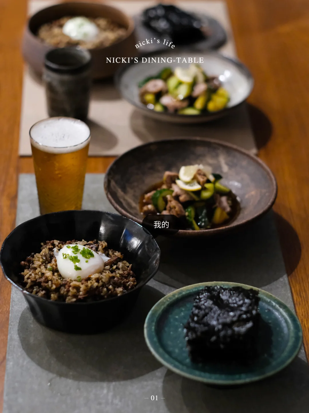 最近晚餐基本都会有一道凉拌菜,一是图方便,二是为开胃。只要再做个下饭菜或是相对丰富的主食,一餐就已搞定。 - 🔅今日c位菜单:肉糜牛肝菌沙葱焖饭 🔅 ·牛肉糜加入胡椒盐腌制片刻。 ·牛肝菌中间部分切片,剩余部分切丁。 ·锅中倒少许油,放入牛肉糜炒至变色下牛肝菌丁,翻炒均匀后,加入菌菇酱(没有的话可以加生抽)。 ·取一土锅,锅中抹上一层油,倒入洗净的米,码上牛肉糜牛肝菌,加水稍稍没过食材,盖锅盖,中火煮至气孔冒烟转小火煮10分钟。 ·煮饭期间,将牛肝菌片煎熟盛出。 ·煮好的焖饭关火,码上沙葱末,铺上牛肝菌片,再焖10分钟即可。 ·可以再煮一个温泉蛋,口感更丰富。 🥗 菜单: -肉糜牛肝菌沙葱焖饭 -柠香黄瓜拌鸡胗