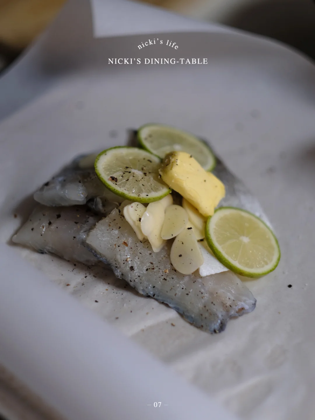 很久没有发一人食餐桌了,夏天没了胃口,也少了做饭的激情,能快速出餐就是好菜! - 🔅今日c位菜单:纸包鲈鱼🔅 ·鲈鱼表面抹上胡椒盐腌制。 ·烘焙纸平铺,铺一些洋葱丝,放上鲈鱼、大蒜片、柠檬片(去籽)、一小块黄油,(有莳萝的话可以放一些),烘焙纸包裹住,放入烤箱200度15分钟。 ·最后,淋上橄榄油,码上新鲜柠檬片即可。 🥗 菜单: -纸包鲈鱼 -牛油果竹轮黄瓜 -冬瓜排骨汤