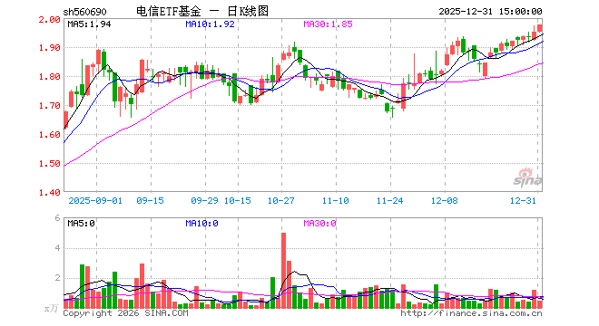12月31日,电信ETF基金(560690)涨1.18%,成交额87.18万元。当日份额减少75.00万份,最新份额为1963.90万份,近20个交易日份额减少600.00万份。最新资产净值计算值为3866.72万元。