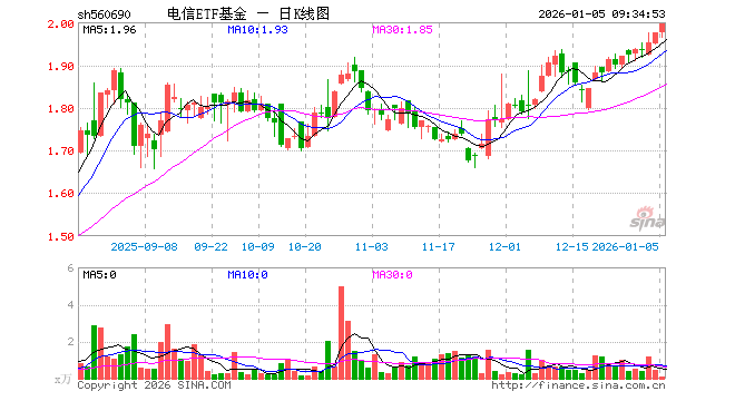 1月5日,电信ETF基金(560690)开盘涨0.05%,报1.976元。电信ETF基金(560690)重仓股方面,中际旭创开盘涨1.82%,新易盛涨1.42%,中国联通涨0.39%,中国移动涨0.33%,中国电信涨0.00%,银之杰跌0.20%,中国卫通涨2.60%,中兴通讯涨0.00%,天孚通信涨1.95%,紫光股份涨0.41%。