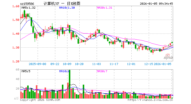 1月5日,计算机ETF南方(159586)开盘涨0.75%,报1.339元。计算机ETF南方(159586)重仓股方面,科大讯飞开盘涨1.41%,同花顺涨0.25%,金山办公涨0.34%,指南针跌0.28%,恒生电子涨0.10%,润和软件涨0.04%,三六零涨0.00%,拓维信息涨0.00%,用友网络涨0.68%。