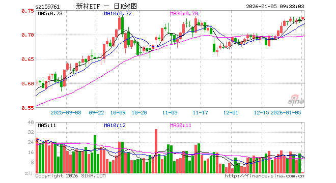 新材料50ETF(159761)业绩比较基准为中证新材料主题指数收益率,管理人为国泰基金管理有限公司,基金经理为王玉,成立(2021-11-24)以来回报为-27.28%,近一个月回报为6.35%。