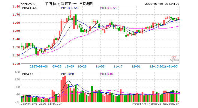 1月5日,半导体材料ETF(562590)开盘涨0.49%,报1.630元。半导体材料ETF(562590)重仓股方面,中微公司开盘涨1.94%,北方华创涨1.94%,长川科技涨0.70%,沪硅产业涨0.74%,华海清科涨0.90%,拓荆科技涨1.08%,南大光电涨0.61%,安集科技涨1.00%,中科飞测涨1.31%,芯源微涨0.34%。