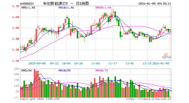 1月5日,科创新能源ETF(588830)开盘涨0.14%,报1.464元。科创新能源ETF(588830)重仓股方面,天合光能开盘涨0.91%,晶科能源涨2.13%,天奈科技涨0.49%,阿特斯涨0.87%,大全能源涨1.16%,厦钨新能涨1.74%,容百科技跌0.28%,孚能科技涨0.64%,聚和材料涨0.82%,嘉元科技跌0.95%。