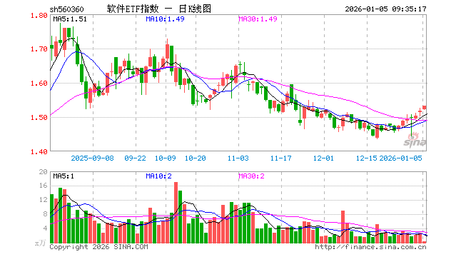 1月5日,软件ETF指数(560360)开盘涨0.26%,报1.522元。软件ETF指数(560360)重仓股方面,科大讯飞开盘涨1.41%,同花顺涨0.25%,金山办公涨0.34%,指南针跌0.28%,恒生电子涨0.10%,润和软件涨0.04%,三六零涨0.00%,拓维信息涨0.00%,用友网络涨0.68%。