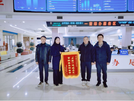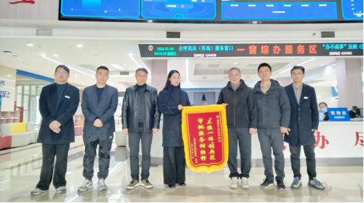 这番真挚的感谢,在元旦节后上班第一天,化作了一面鲜红的锦旗。当日上午,贵溪市交通局代表专程来到市行政审批局,将刻有“三位一体创典范,审批服务树标杆”字样的锦旗郑重赠予市行政审批局,对我局在服务重大项目中提供的“集成审批、超前辅导、全程对接”高效暖心服务给予高度认可与褒奖。这份特殊的“新年礼物”,不仅为我局全年工作拉开了振奋序幕,更为新年度的行政审批和政务服务工作注入强劲动力。