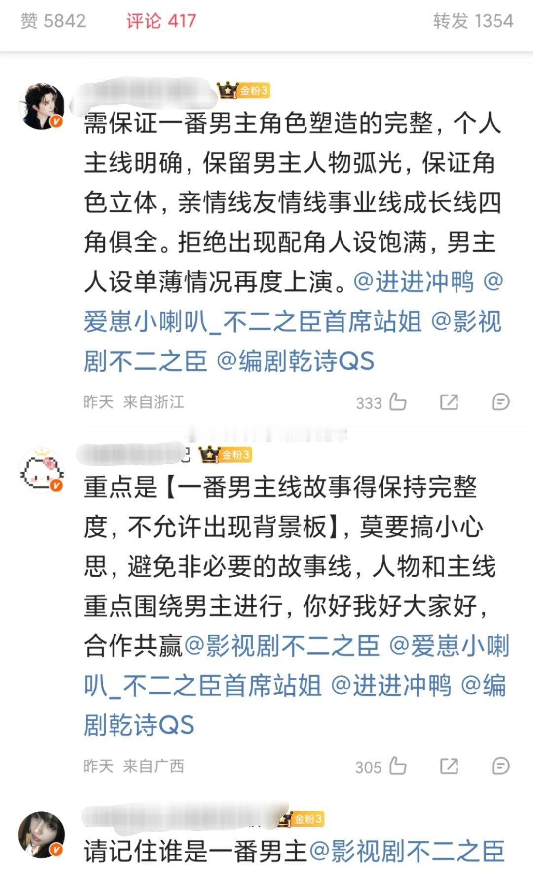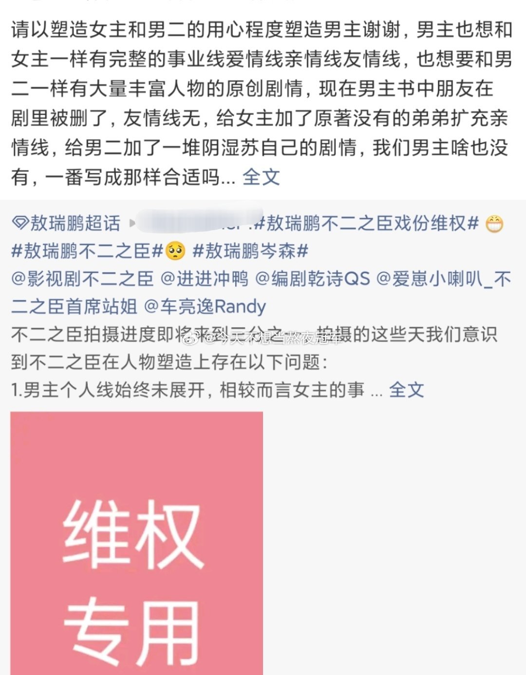 tg. 敖瑞鹏粉丝向《不二之臣》剧组wq要求剧组保证一番戏眼男主戏份的主体性,拒绝魔 改,拒绝给配角胡乱加戏