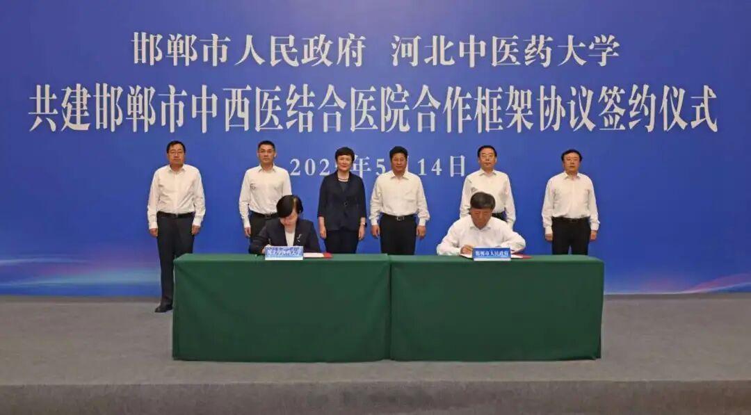 邯郸市政府与河北中医药大学签订共建邯郸市中西医结合医院合作协议。市委书记李晋宇、河北中医药大学党委书记高维娟出席签约仪式并致辞,市长樊成华主持签约仪式,河北中医药大学校长郭毅出席。