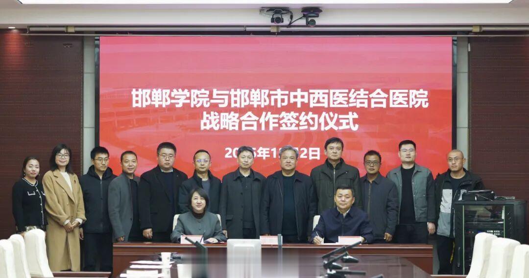 邯郸市中西医结合医院与邯郸学院战略合作协议签约仪式在邯郸学院第二会议室举行。邯郸市中西医结合医院党委书记井永法、院长宋利宏,邯郸学院党委常委、副校长李燕及双方相关部门负责人出席仪式。
