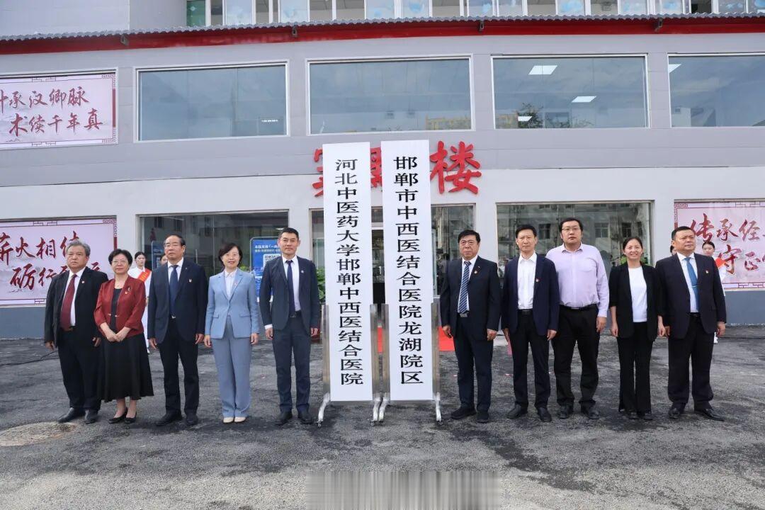 河北中医药大学邯郸中西医结合医院揭牌暨邯郸市中西医结合医院龙湖院区开诊仪式隆重举行。邯郸市人民政府副市长靳禄兵,市政府办公室二级调研员张建东;河北中医药大学校长郭毅,党委常委、副校长佘延芬;邯郸市卫健委党组书记李之杰、主任李小静、副主任周海英;市直各医疗机构和各县(市、区)中医院主要负责人、邯郸市中西医结合医院党委书记井永法、院长宋利宏及全体领导班子、中层干部、龙湖院区临床医技科室人员等200余人参加,共同见证这一重要时刻。