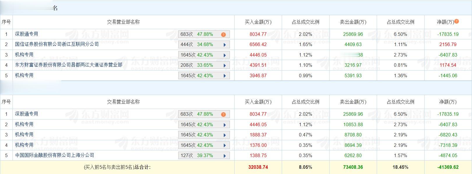 中超控股(002471.SZ)今日跌7.61%,换手率39.46%,成交额39.78亿元。龙虎榜数据显示,深股通买入8035万元,卖出2.59亿元,净卖出1.78亿元;四家机构买入1.17亿元,卖出3.36亿元,净卖出2.2亿元。上榜席位全天买入3.2亿元,卖出7.34亿元,合计净卖4.14亿元。(格隆汇)