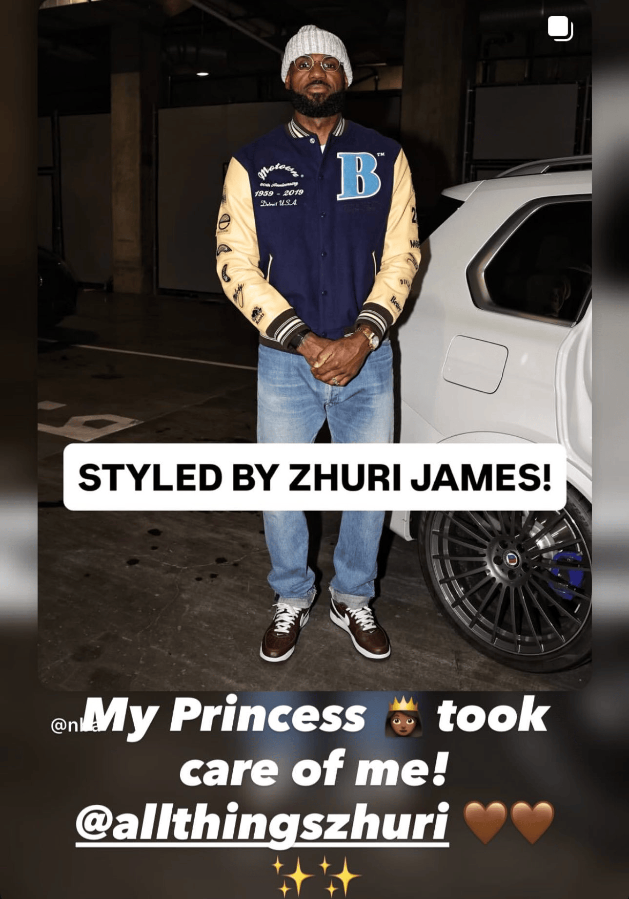 詹姆斯赛后晒出本场入场穿搭:来自我宝贝女儿小公主朱莉的穿搭设计。