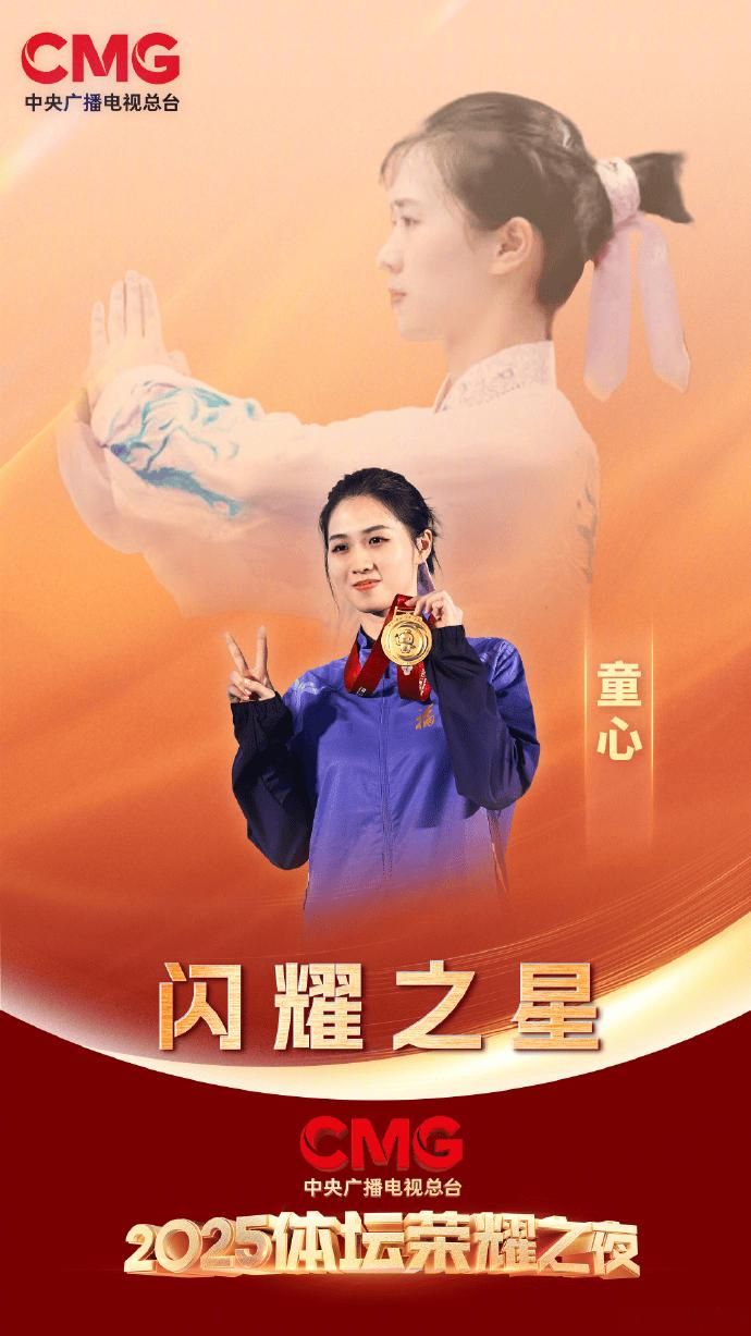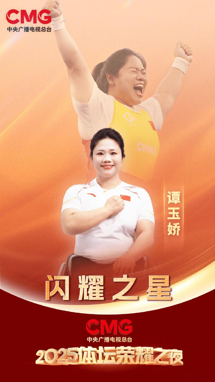 “闪耀之星”揭晓:女子铅球运动员巩立姣、跳水运动员陈艾森、女子武术套路运动员童心、女子跳高运动员邵雨琪、残疾人举重运动员谭玉娇当选。