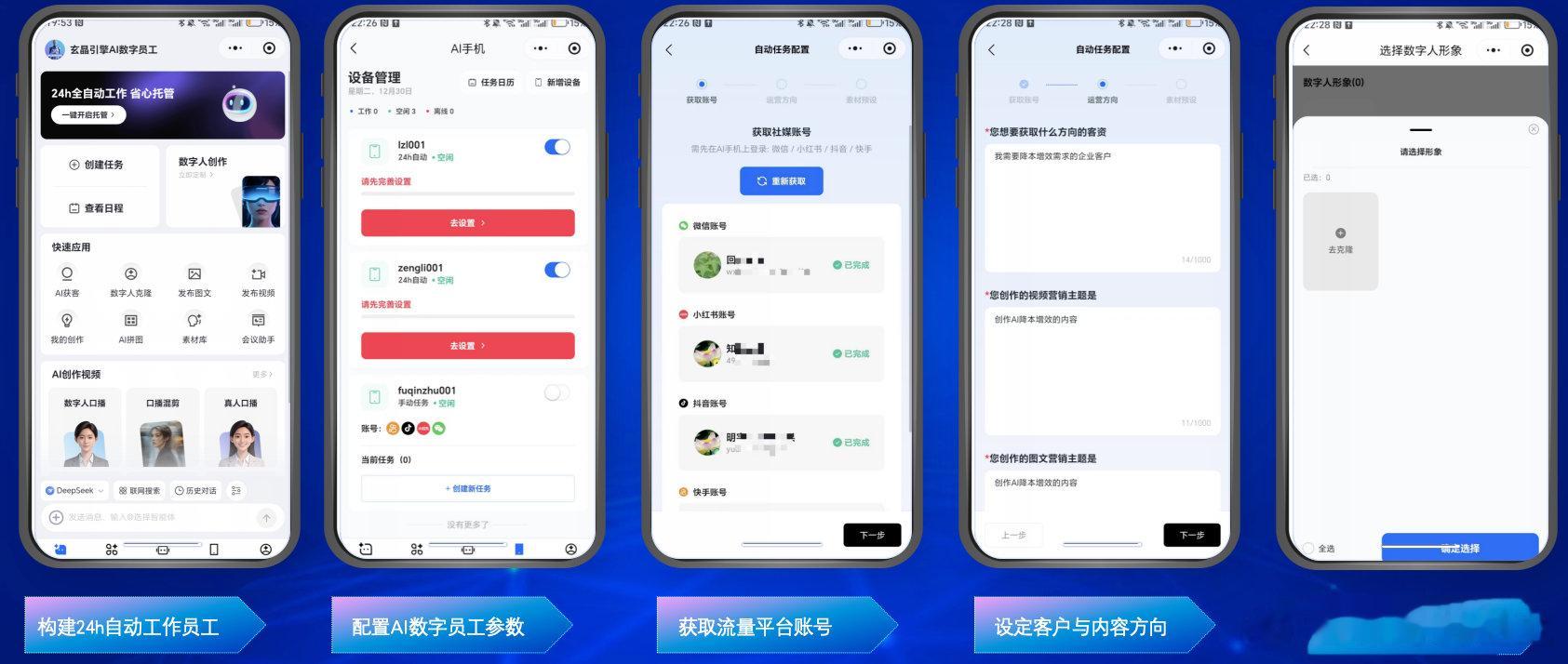 第三步,启动7×24小时全自动运营。完成基础设置后,系统自动分配工作任务,全流程无需人工干预:前端通过AI数字人内容矩阵实现全域引流,中端借助智能客服完成流量承接与精准筛选,后端通过自动化SOP完成私域维护与需求跟进。配套的定制化AI手机更实现了“线上系统+线下硬件”的协同,将内容发布、好友添加、朋友圈运维等动作转化为自动化操作,彻底解放人力成本。