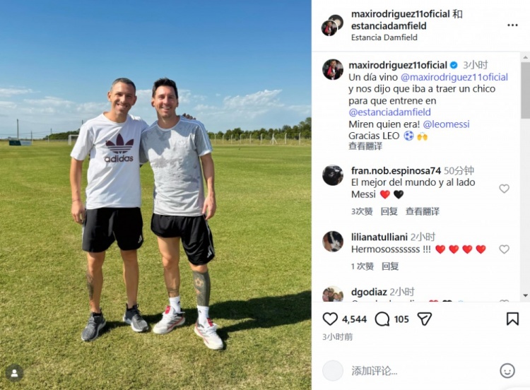 梅西和马克西·罗德里格斯在轻松的氛围里度过了愉快时光,这是一个有着足球、马黛茶以及分享在阿根廷国家队共事时回忆的会面。