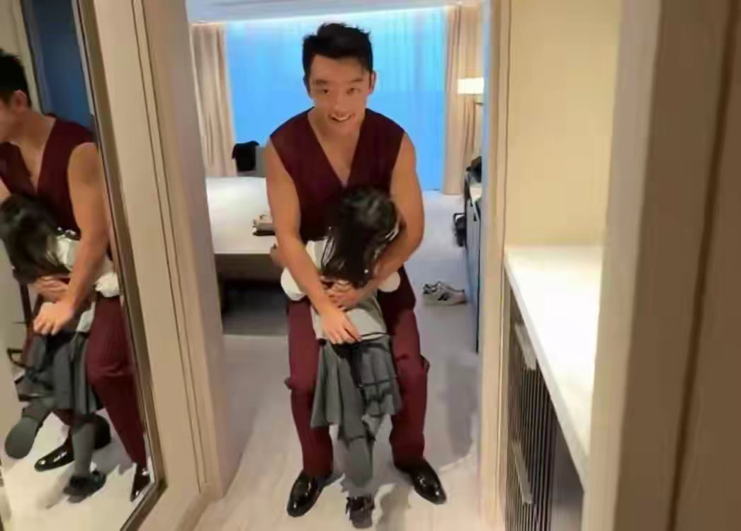 苗苗元旦带儿女探班郑恺,新加坡吃日料游泳,孩子自己洗澡很独立